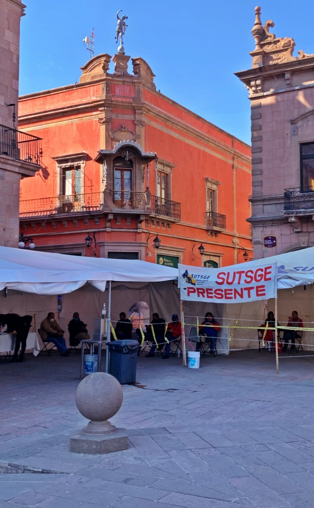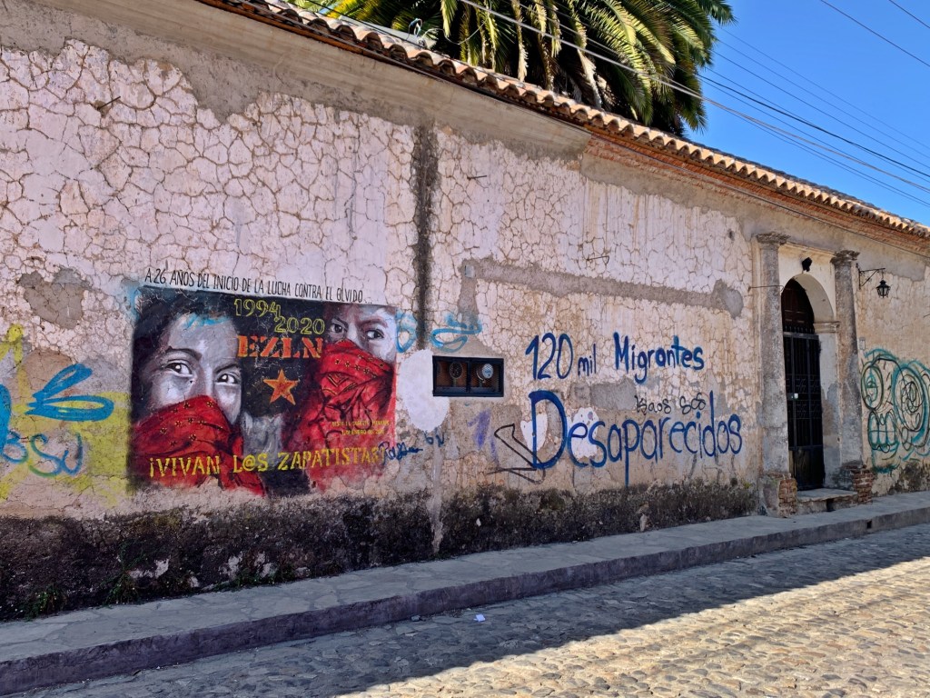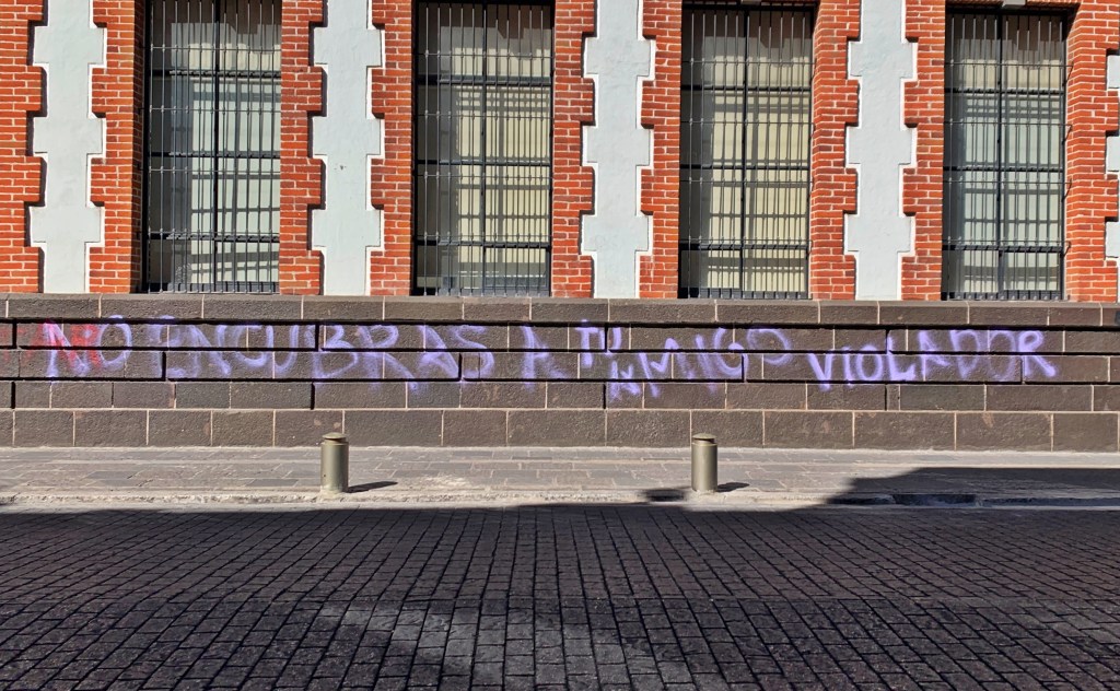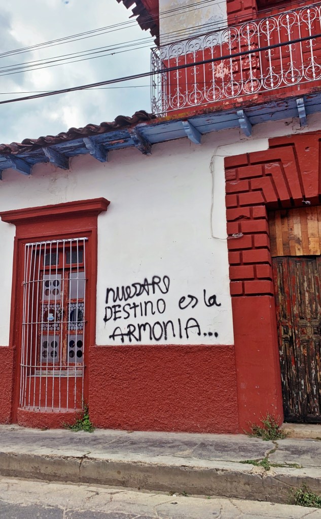 Now on to my next task – buy a bottle of red wine to enjoy while watching the Seattle Symphony Concert tonight. Finding good wine in Mexico – that doesn’t cost an arm and a leg – has been difficult for me. I crisscrossed the historic center with little luck. Along the way I found some graffiti that looked like it might have come after the display of state police that I saw yesterday in front of the government offices.