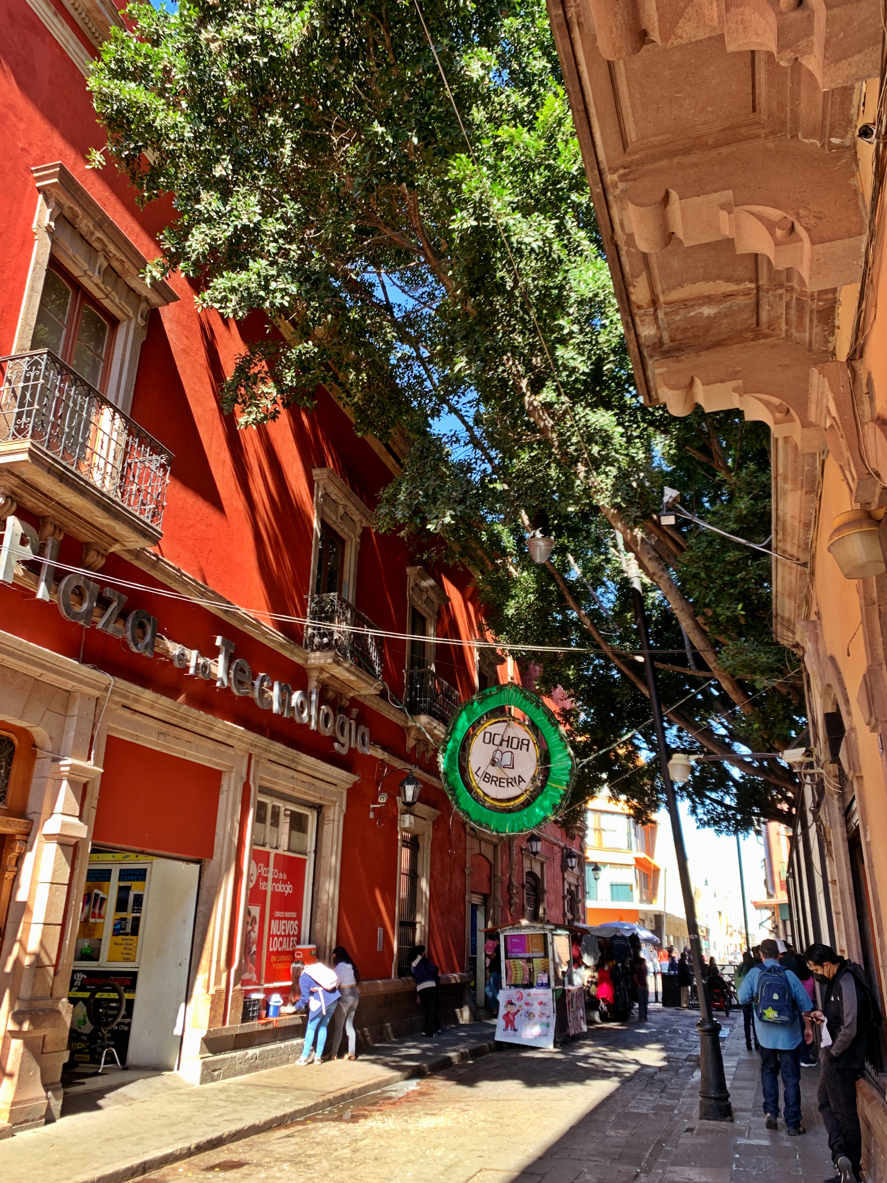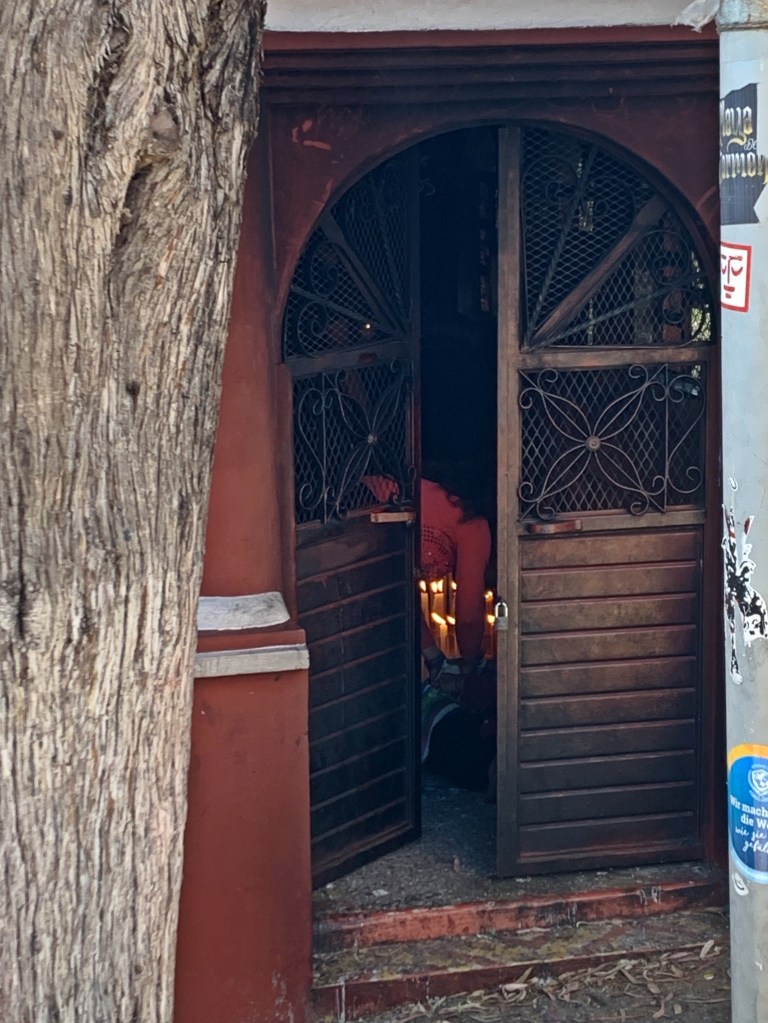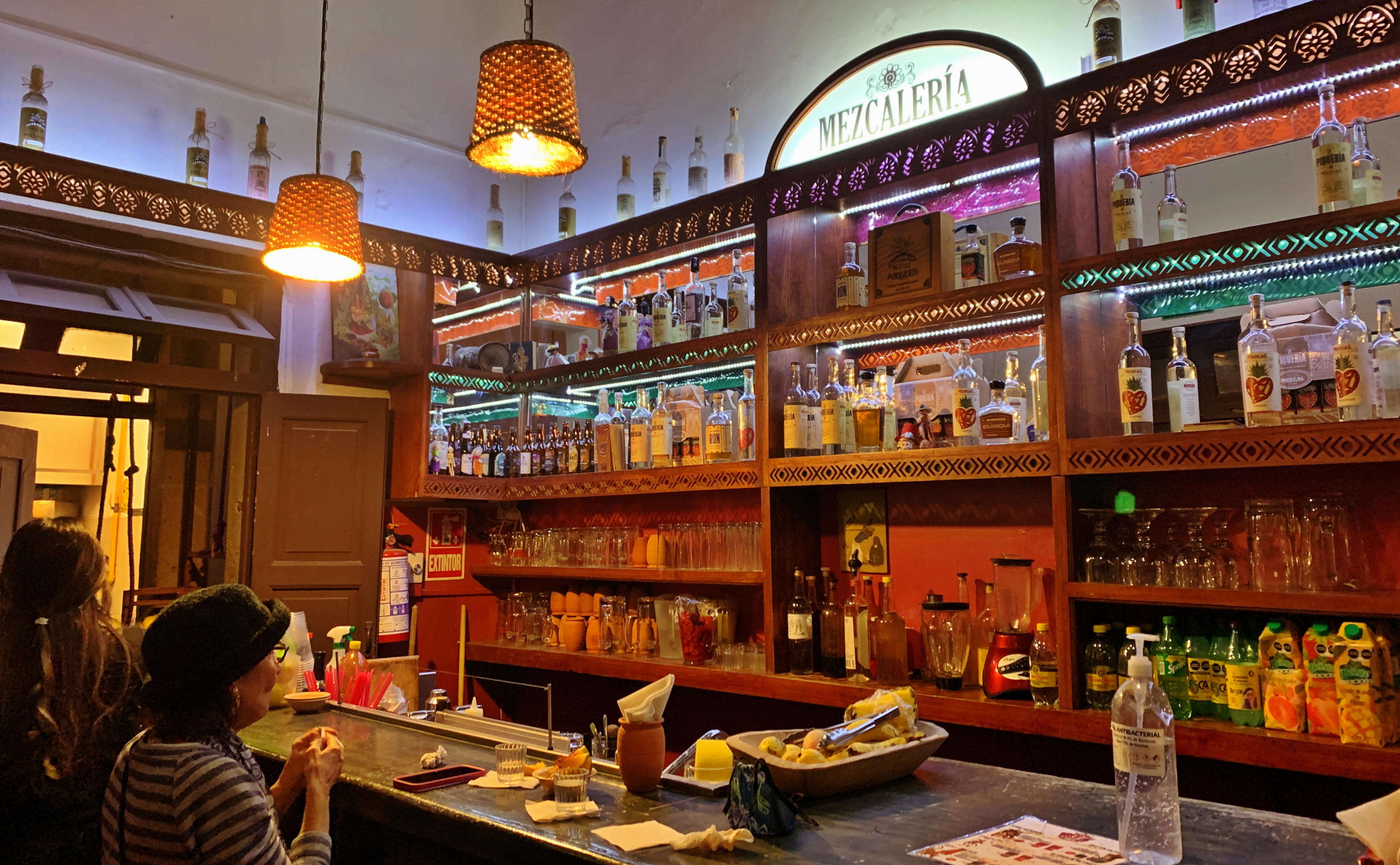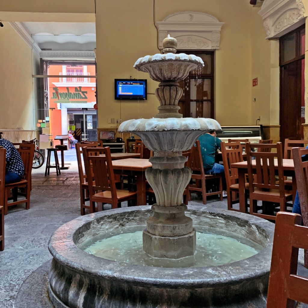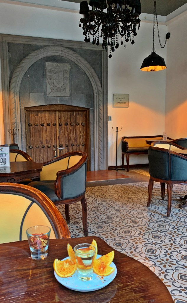After the heartwarming exchange with the couple on the steps I felt I needed a pause before continuing my hunt for wine. In the next block I stopped in for some tasty mezcal (and some agua mineral) served in the tranquil and delightful atmosphere of the Hotel Marqués del Angel.