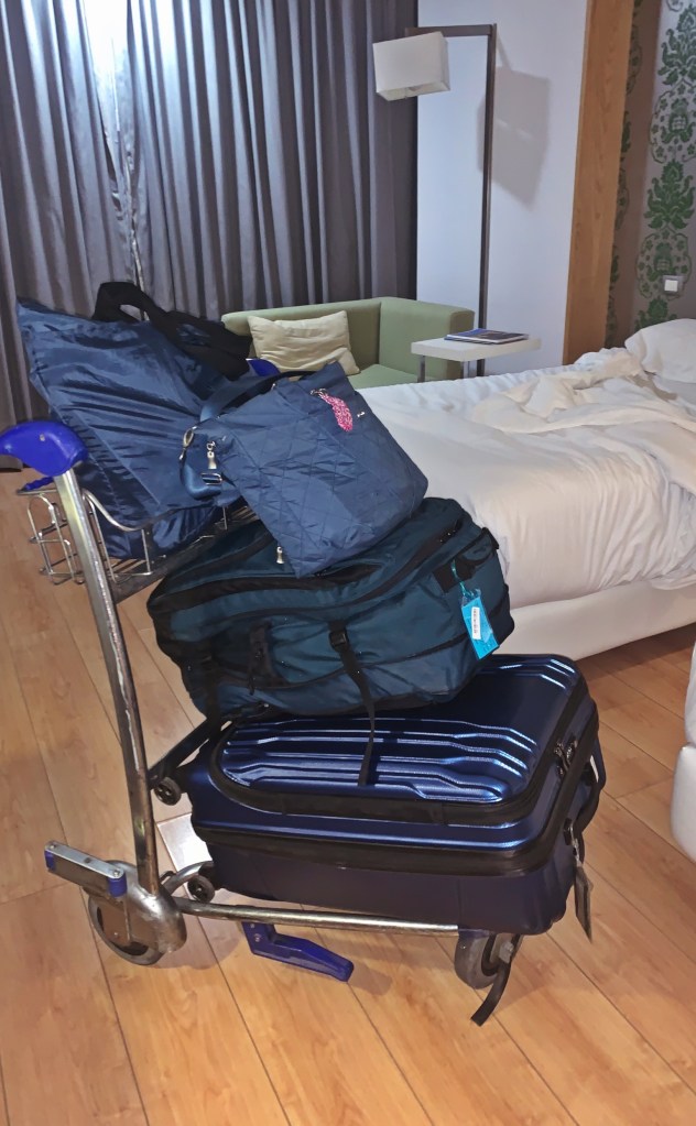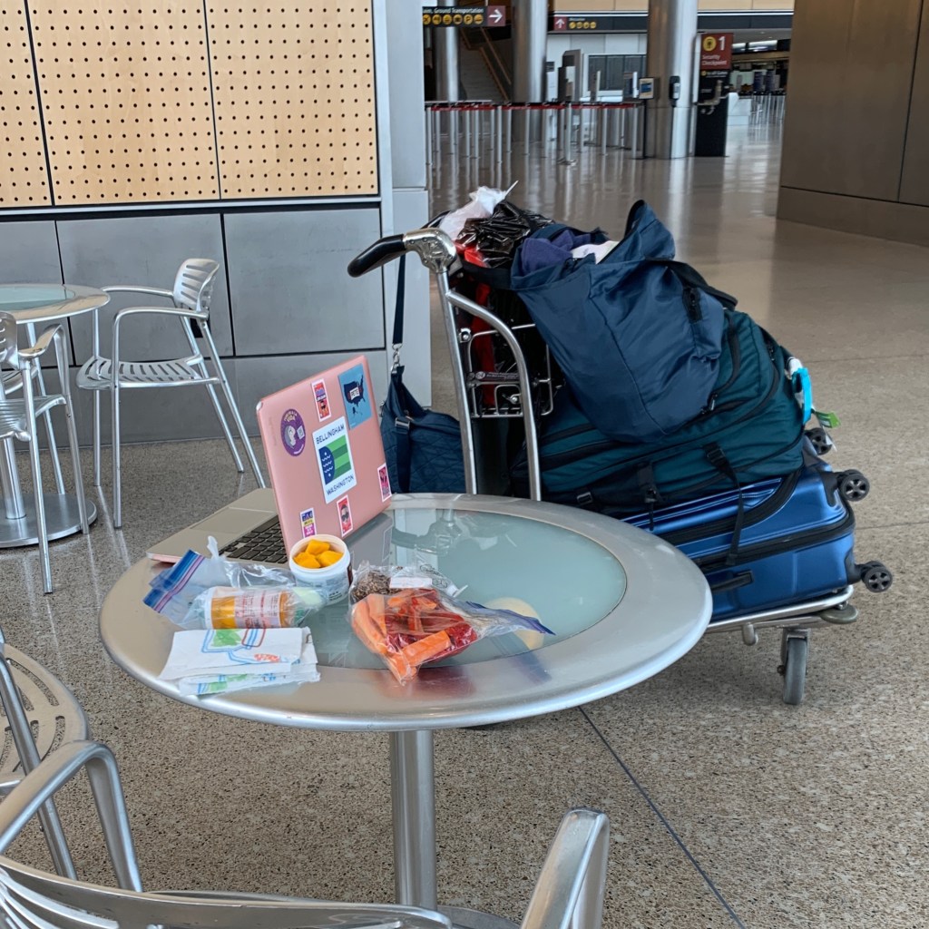 Me and my baggage finding a spot to spend my 8 hour layover!