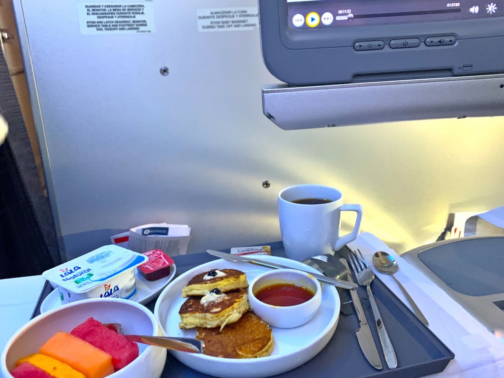 This day started out early – I woke up at 3:45 am (2:45 Bellingham time). The hotel was great and just a five minute walk to the check-in station. They seemed to have a lot more checks than last time. Before I could get to security I had to pass a health screening, including temperature check. It was all quick and easy as there weren’t many travelers. As I was boarding, for no apparent reason, I was upgraded to First Class! What a delight, but still nothing but water and coffee.