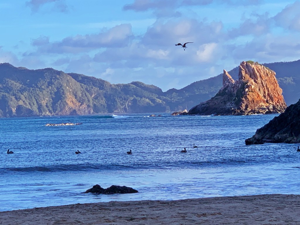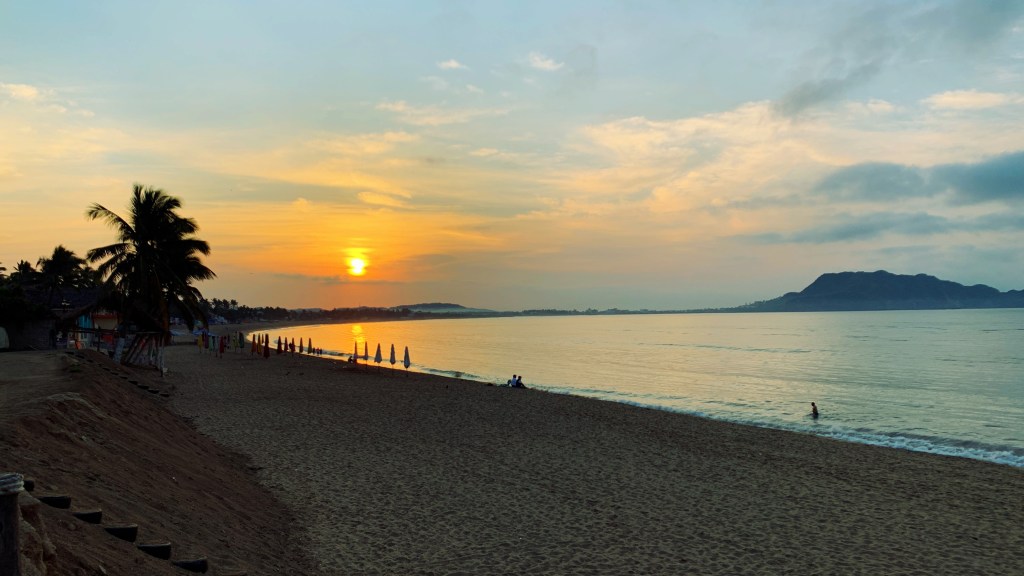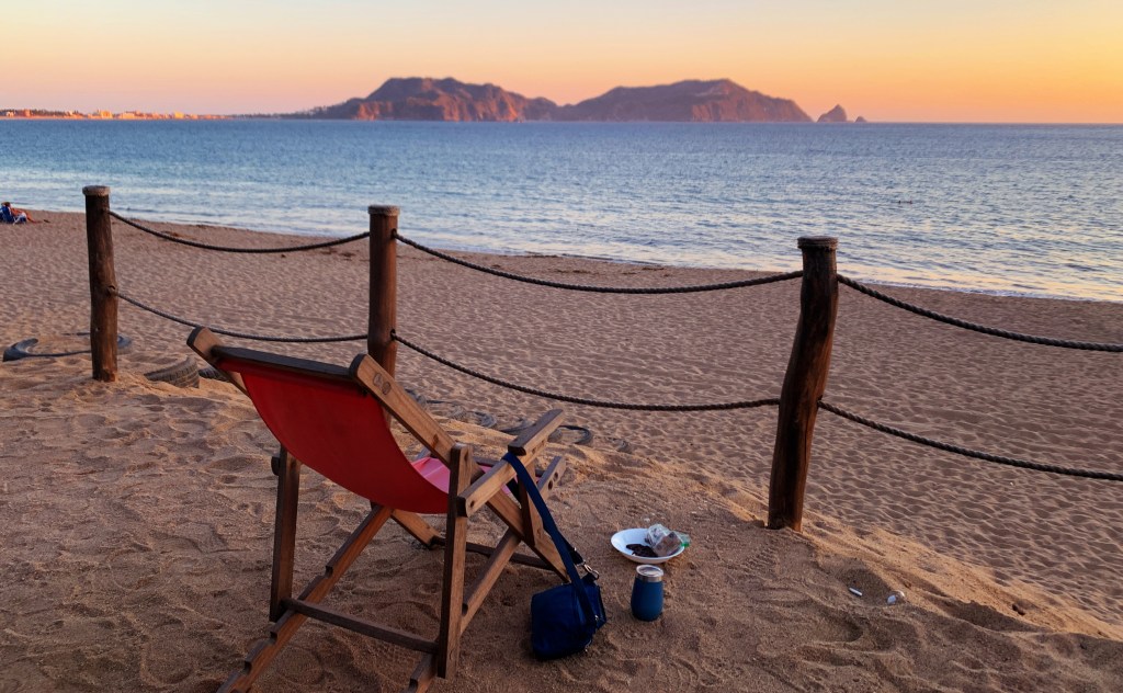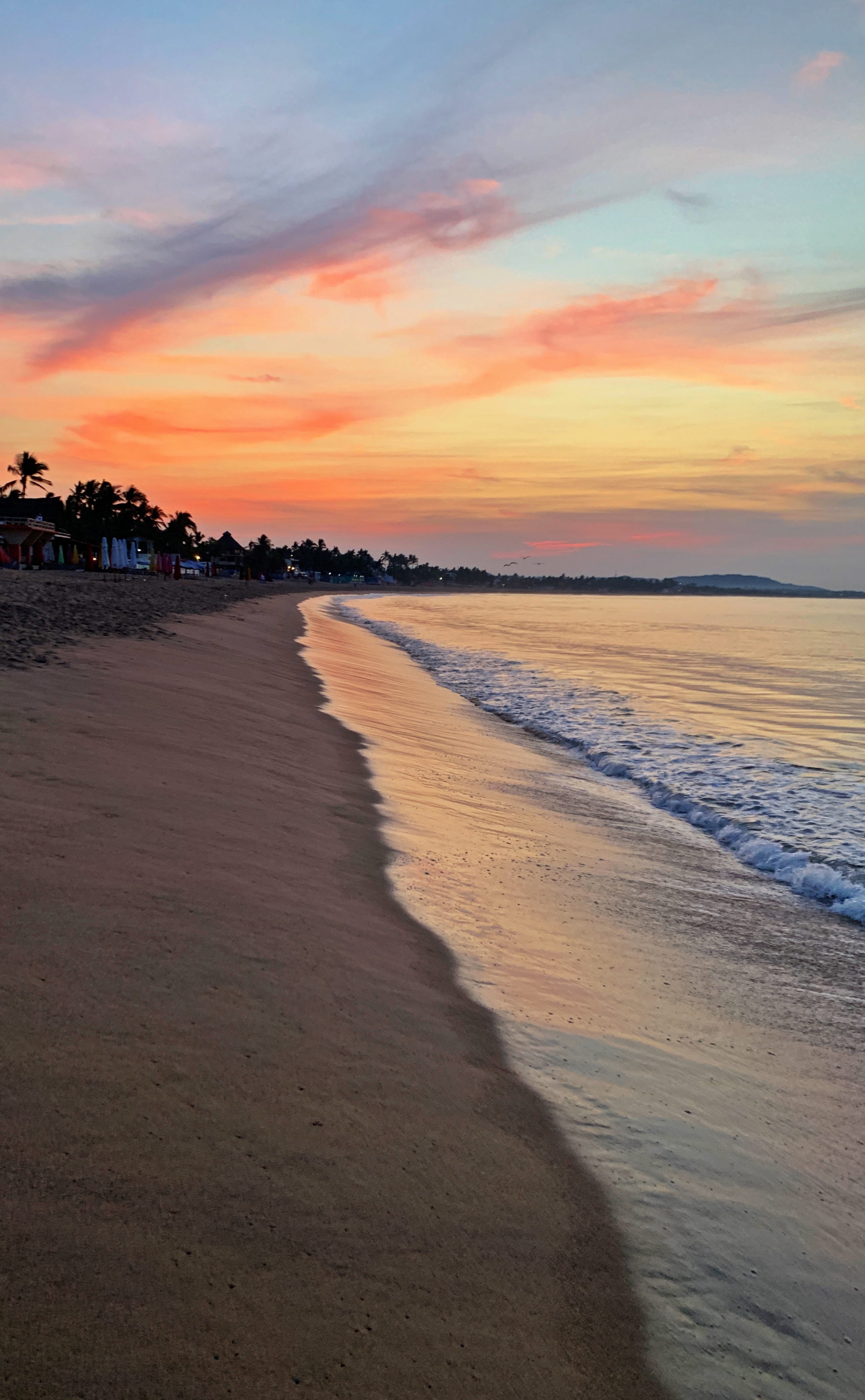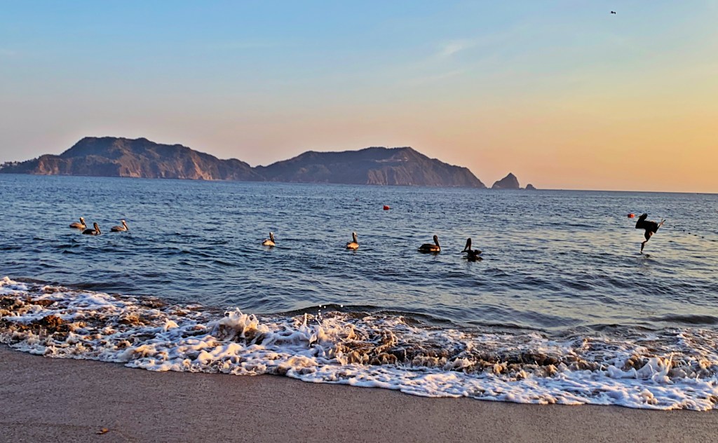 It took me awhile let go of the busyness in my mind, accept that “lazy” is not bad here and now, that being alone is ok, find a nurturing routine, and enjoy the intensity of the warm sun. When I did, the extraordinary beauty of this place found me. I have more photos of the sunrises and sunsets because I tend to retreat to the shaded areas to read during the hottest time of the day. I am not interested in buying things and there are no beautiful buildings, museums, or ruins to see. I’m not interested in day trips, live performance of old rock music, or in seeking out fancy restaurants. I feel lulled by the sound of the waves, nourished by gazing at the sunrises and sunsets, sustained by the endless hours of reading, and refreshed by dips into water. Observing the pelicans flying and diving into the water causes me to smile, observing families playing together tiggers fond memories.