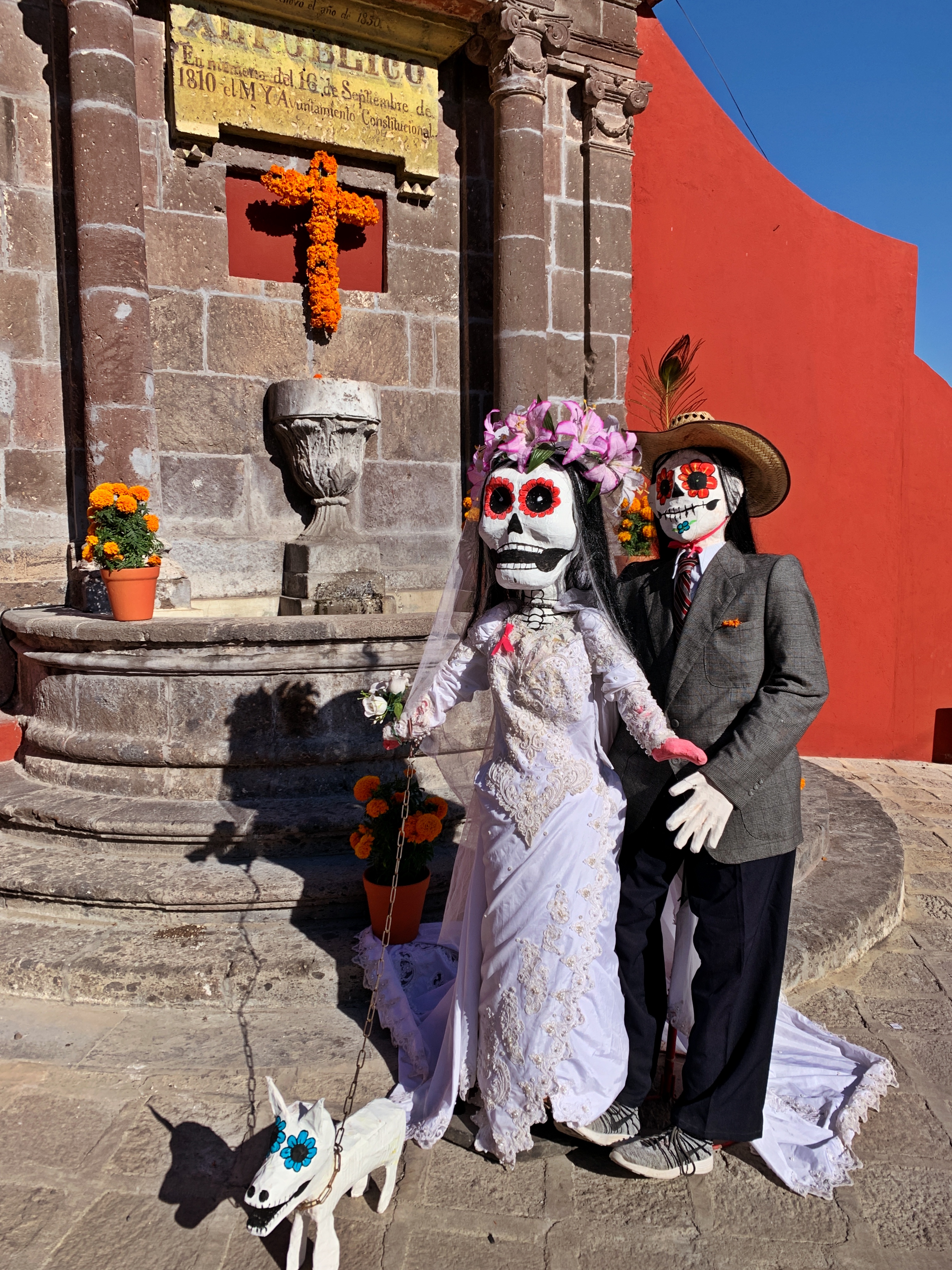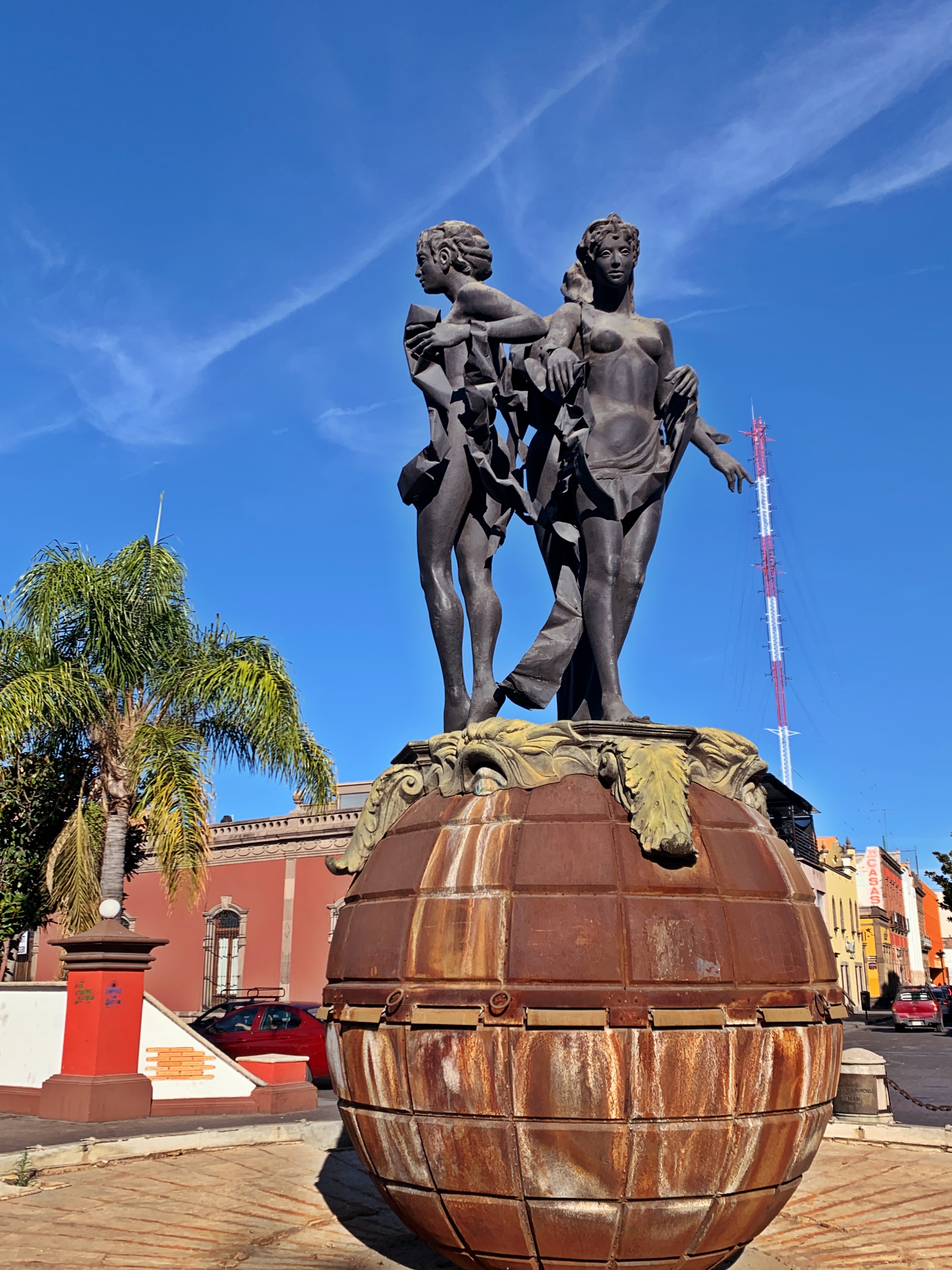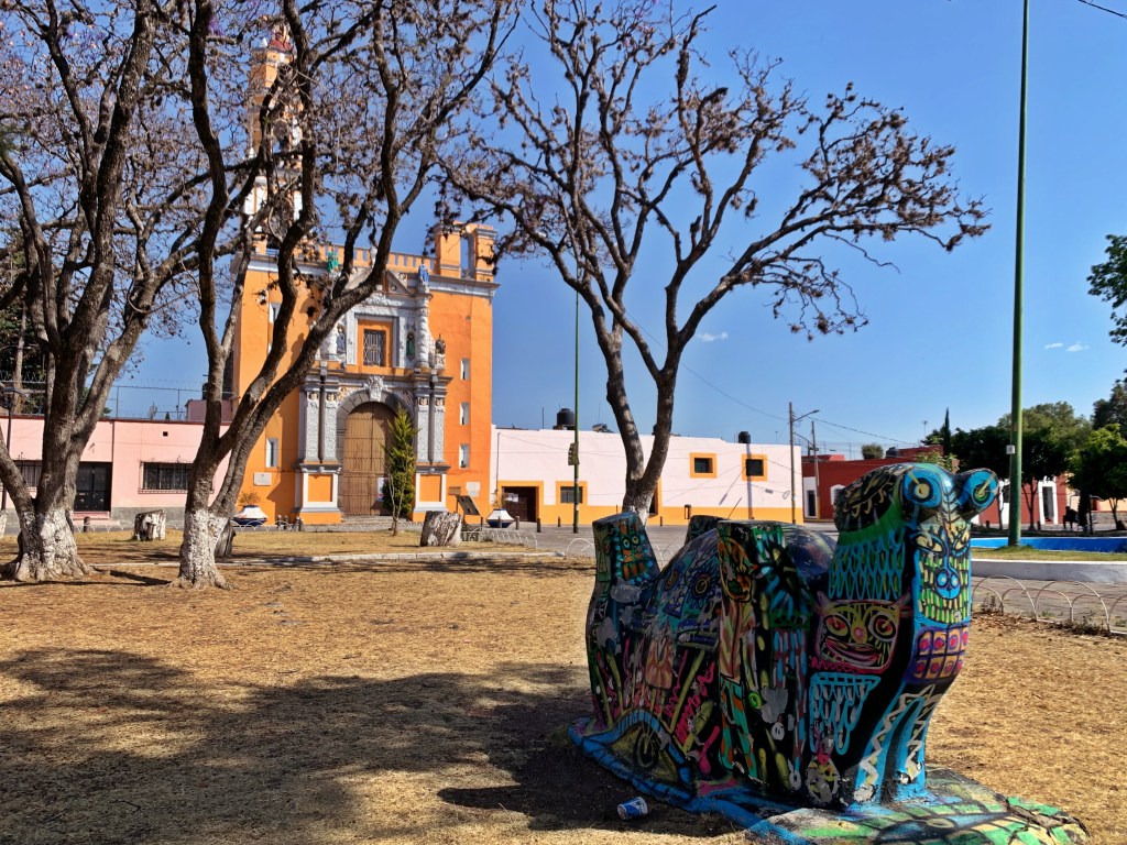 My host, Sofia Ibarra, on the left, with her best friend.a giant alebrijeCatrina lurking in a plaza“Here waiting for the clients”The aguagete in CholulaThe aguagete in Cholulain the Plaza de la Concordia in CholulaParroquia de San Pedro