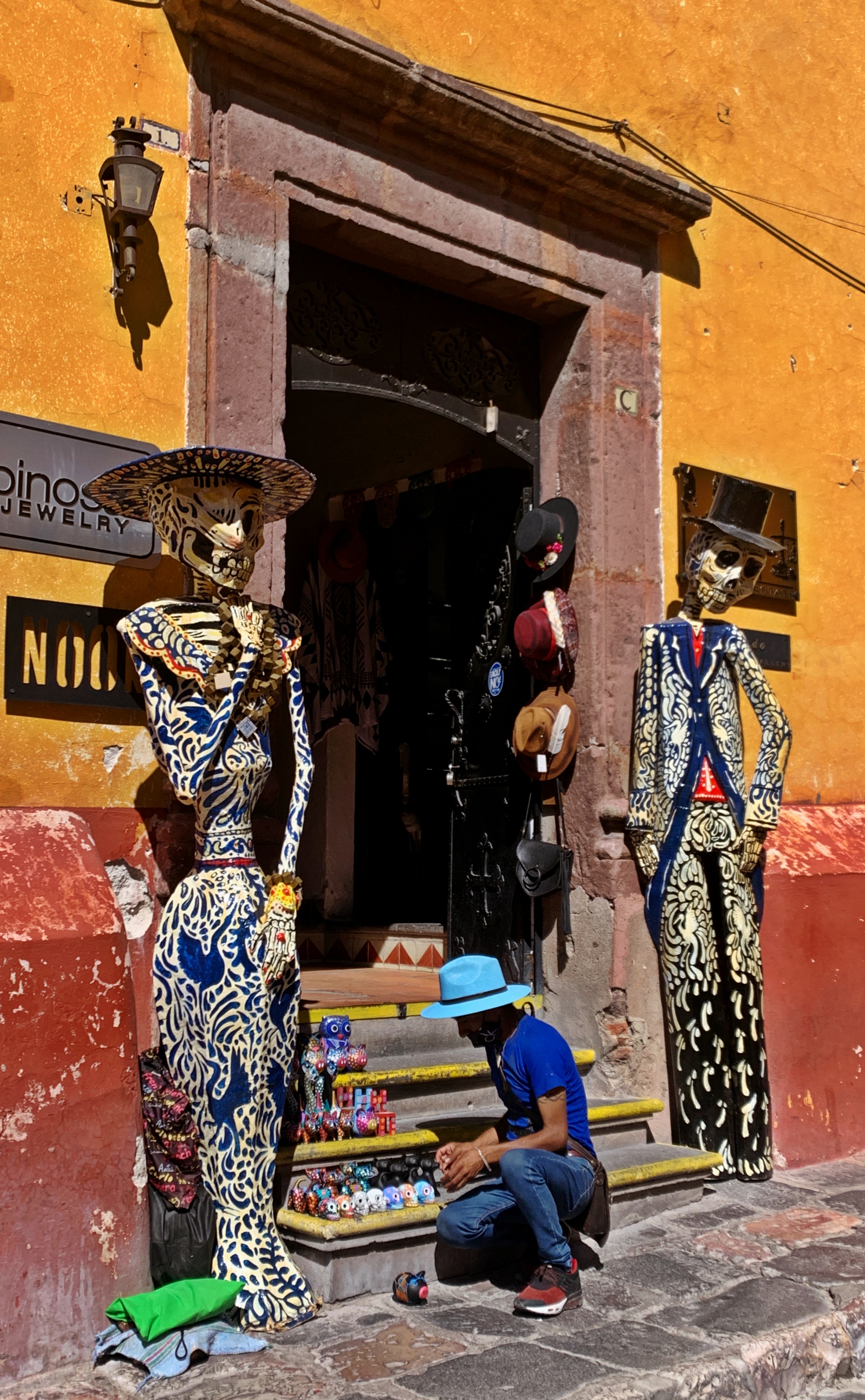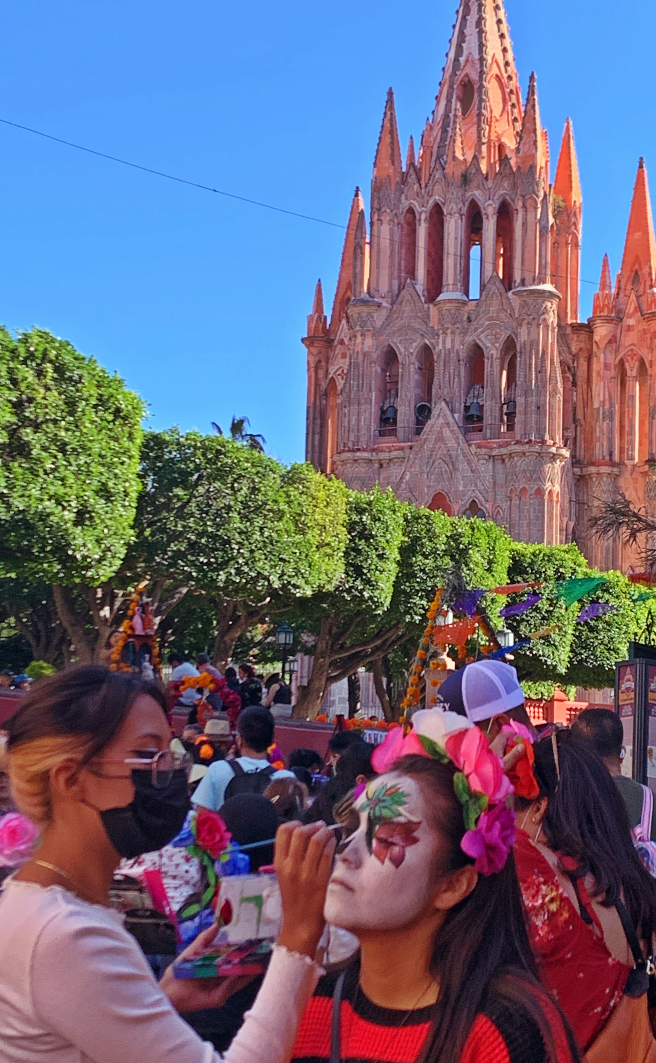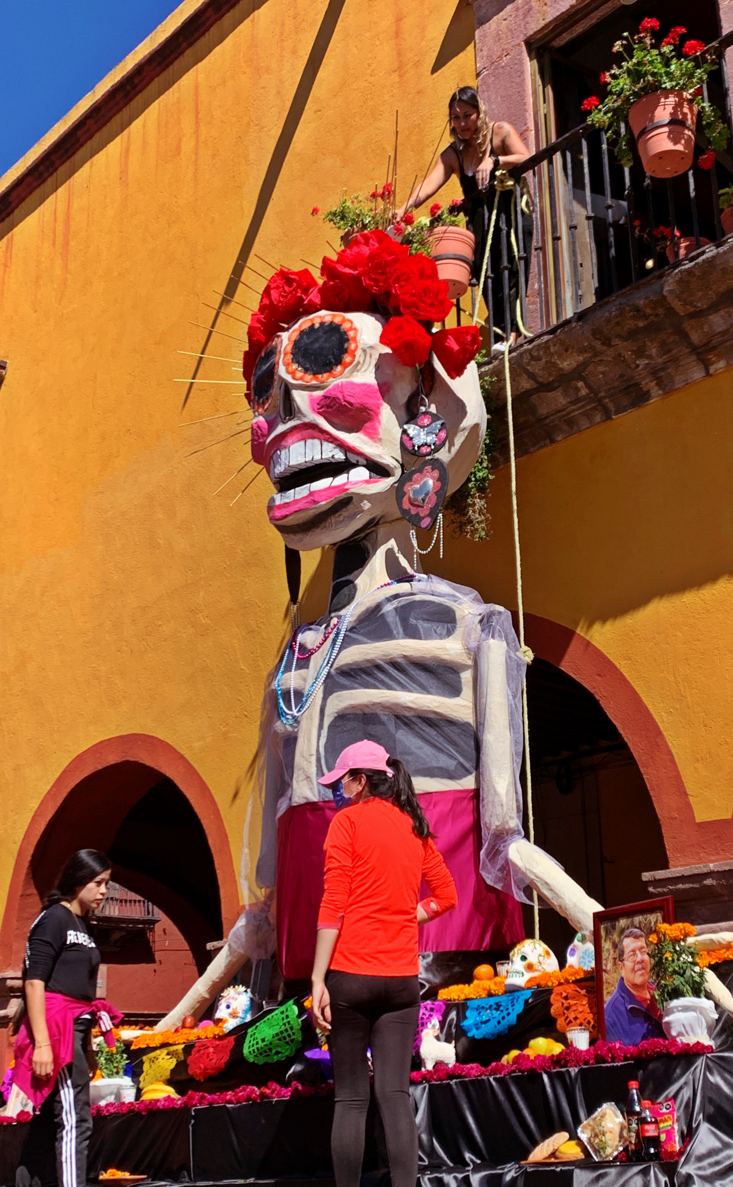 My host, Sofia Ibarra, on the left, with her best friend.a giant alebrijeCatrina lurking in a plaza“Here waiting for the clients”The aguagete in CholulaThe aguagete in Cholulain the Plaza de la Concordia in CholulaParroquia de San Pedro