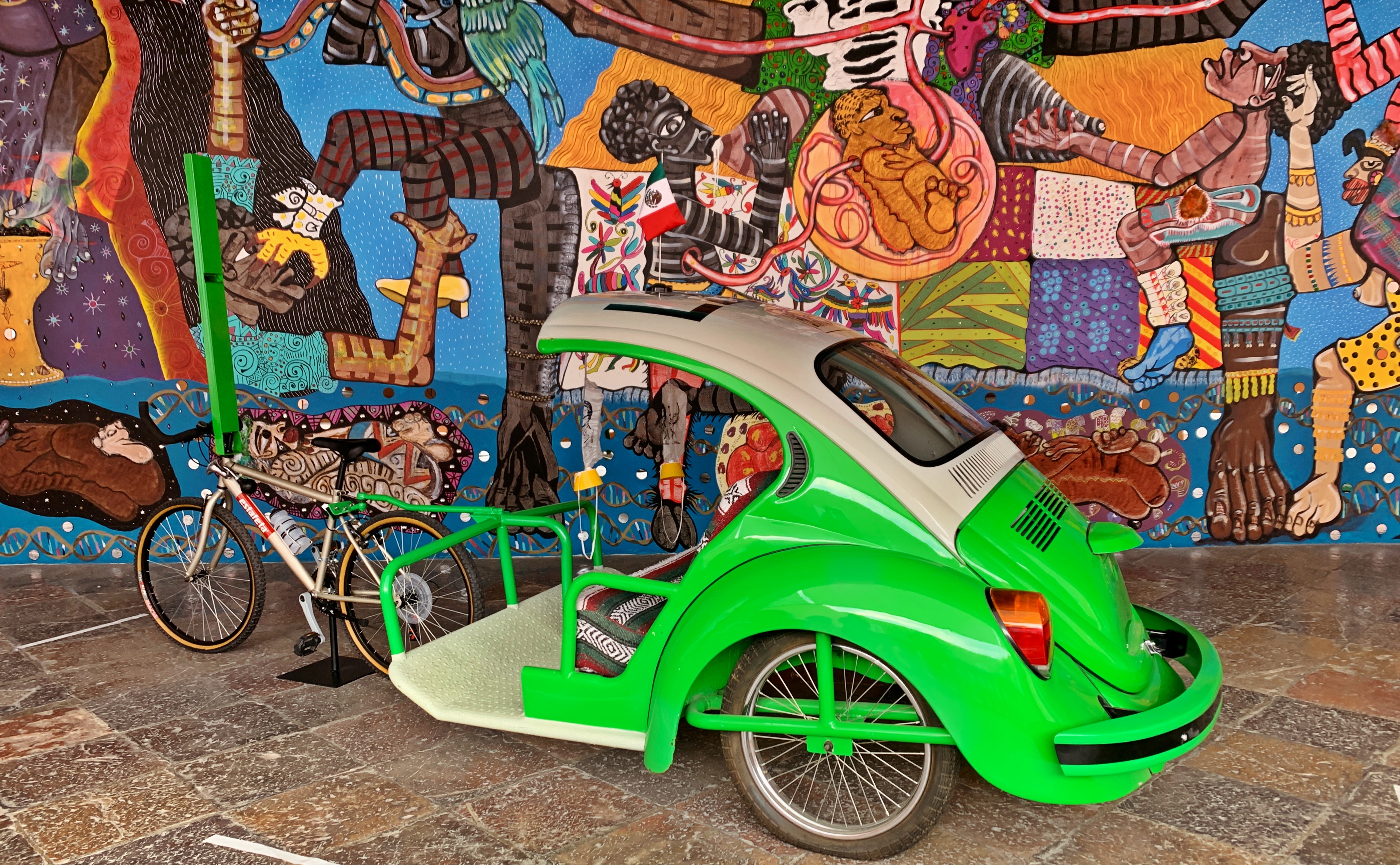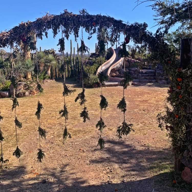 Sophia drove to our second “paseo” and her good friend joined us. I loved traveling with those two! From the back seat there were shouts of “watch out for the speed bump” – and there were lots of them! Sophia was taking us to see the Ahuehuete in Cholula – an ancient tree native to Mexico. In the indigenous language of Náhuatl the name means “an old tree of water”, as it grows where this is a lot of water. This tree is huge! I saw another one outside of Oaxaca which is more celebrated. Sophia had thought she knew right where it was, but that was not the case. Rather than refer to Google Maps, she would spot someone along the street, roll down her window, and say “!Oye!”. She did this about ten times before we actually found the tree – what fun!