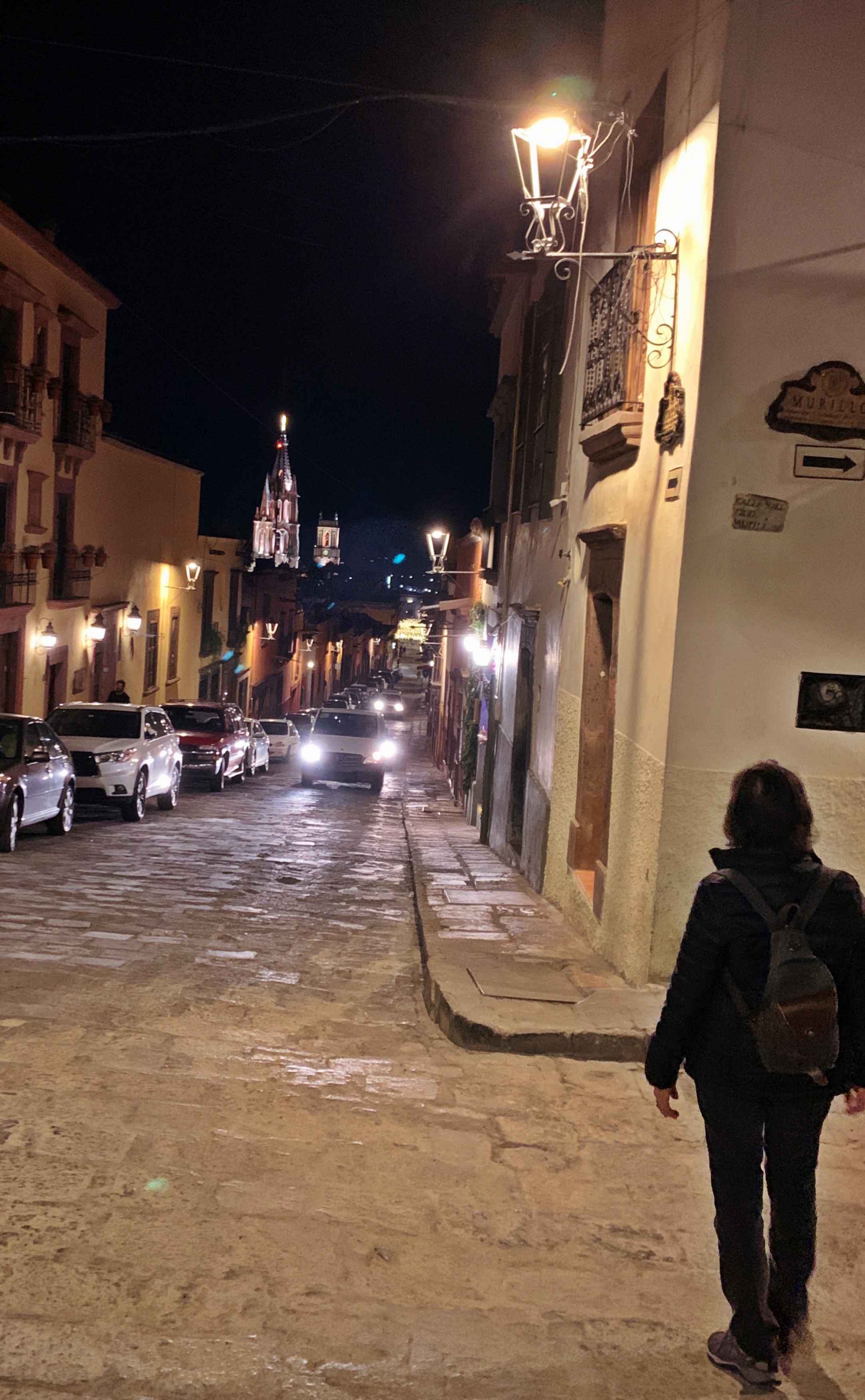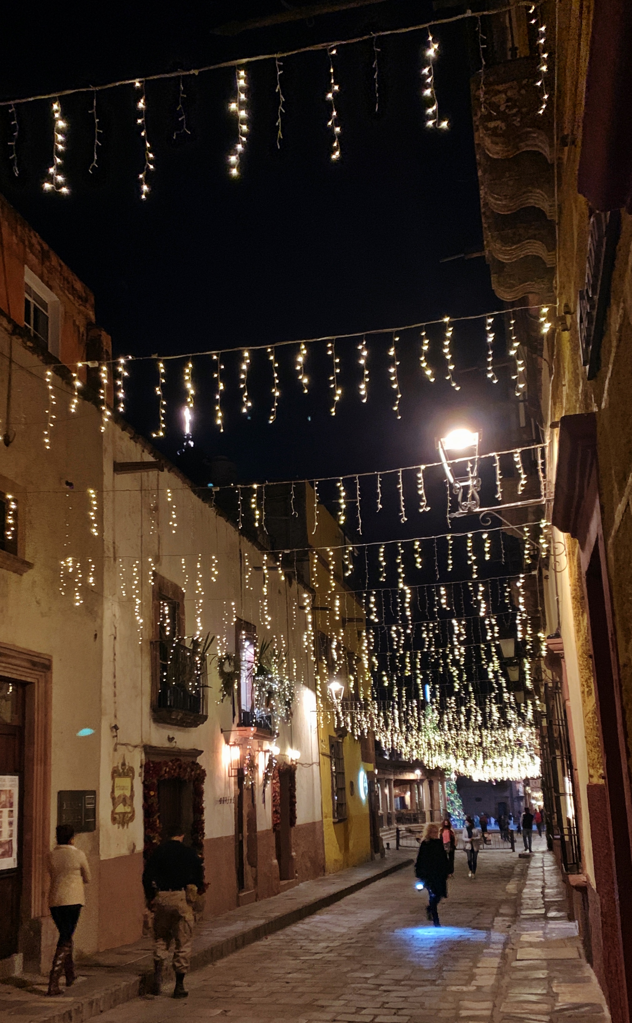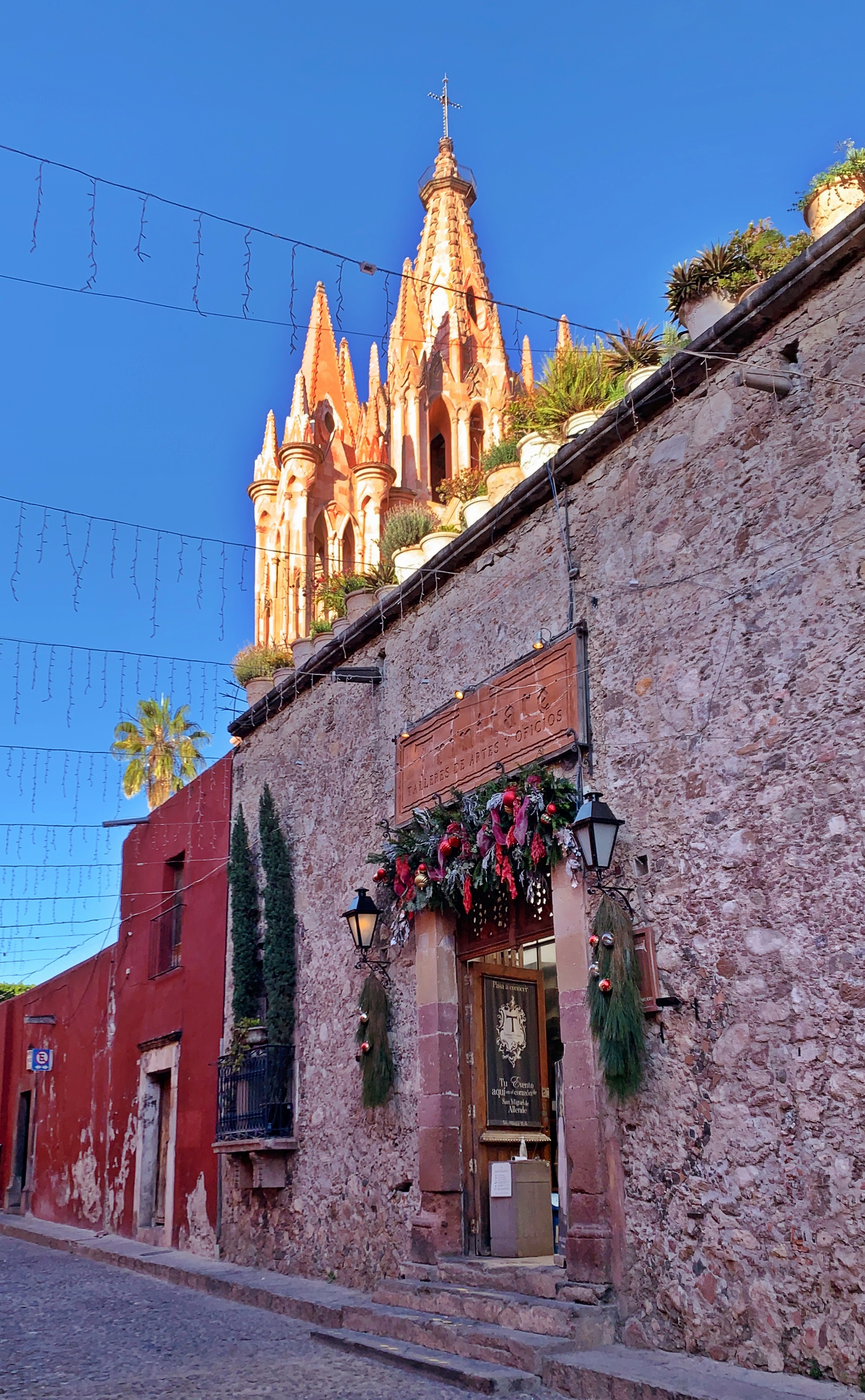Since returning from San Luis Potosí, I have been enjoying watching San Miguel de Allende get dressed up for Christmas! Of course the best was to do that is to walk around at night. And, no matter where you go, it is the Parroquía that draws your attention.