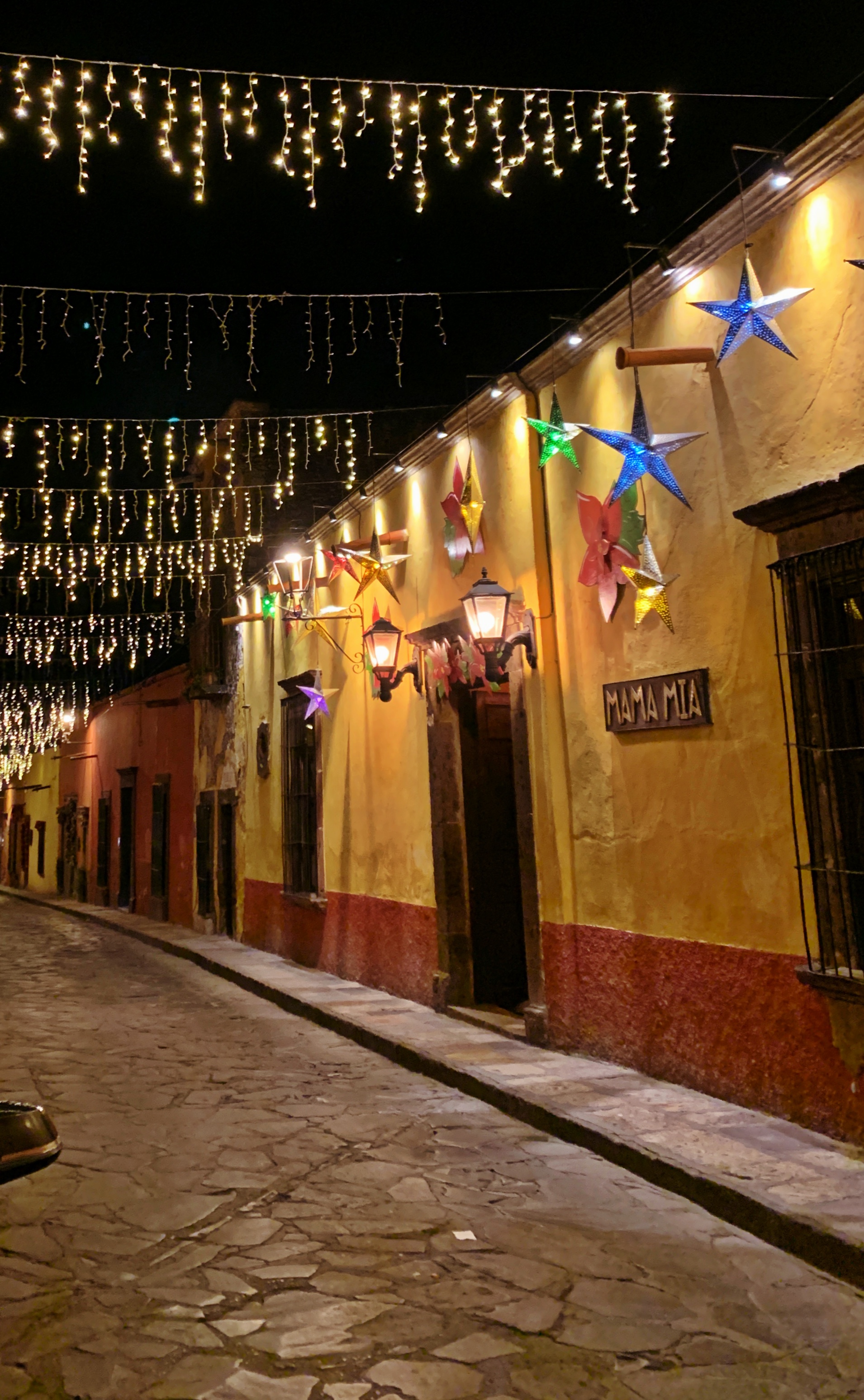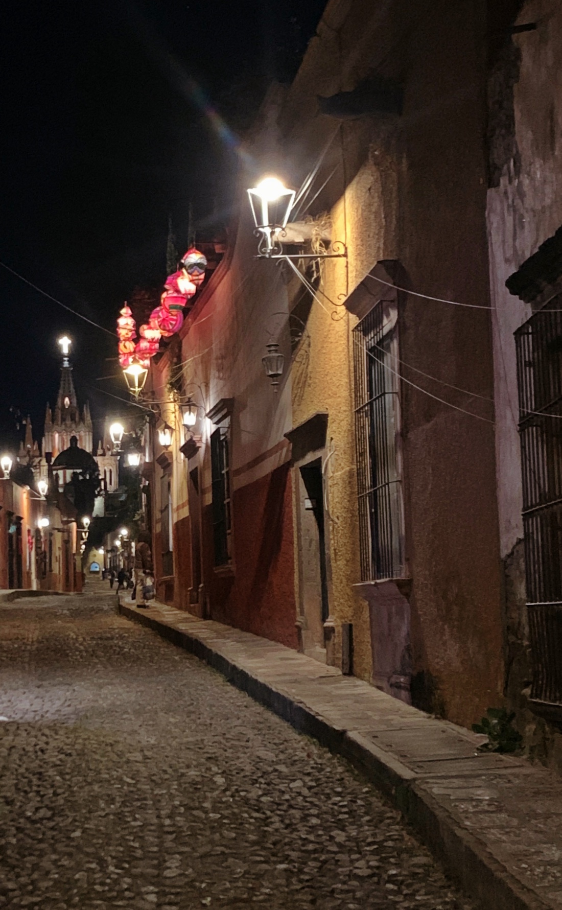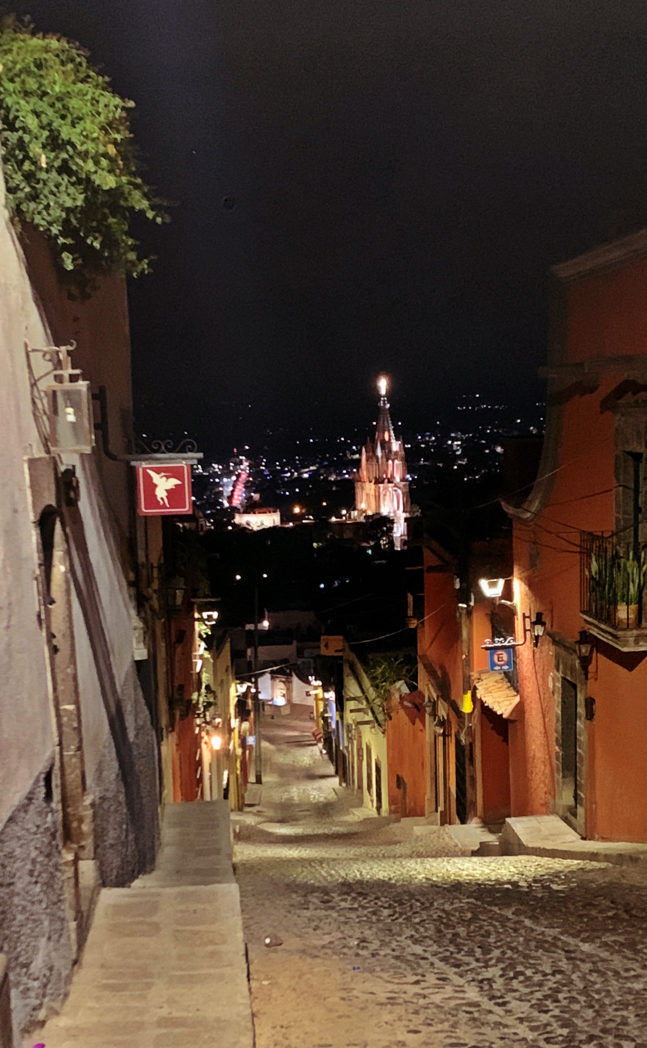 Since returning from San Luis Potosí, I have been enjoying watching San Miguel de Allende get dressed up for Christmas! Of course the best was to do that is to walk around at night. And, no matter where you go, it is the Parroquía that draws your attention.