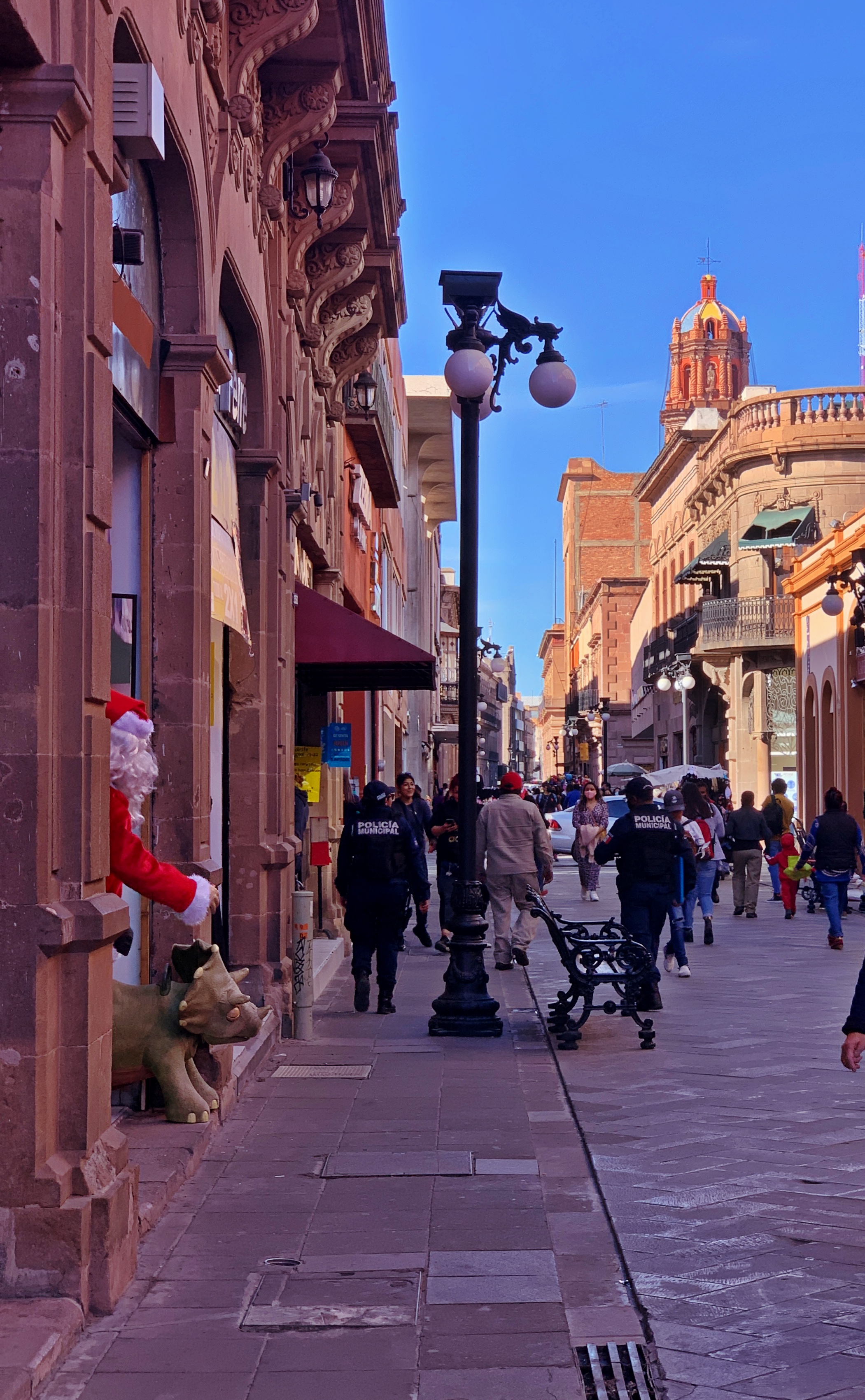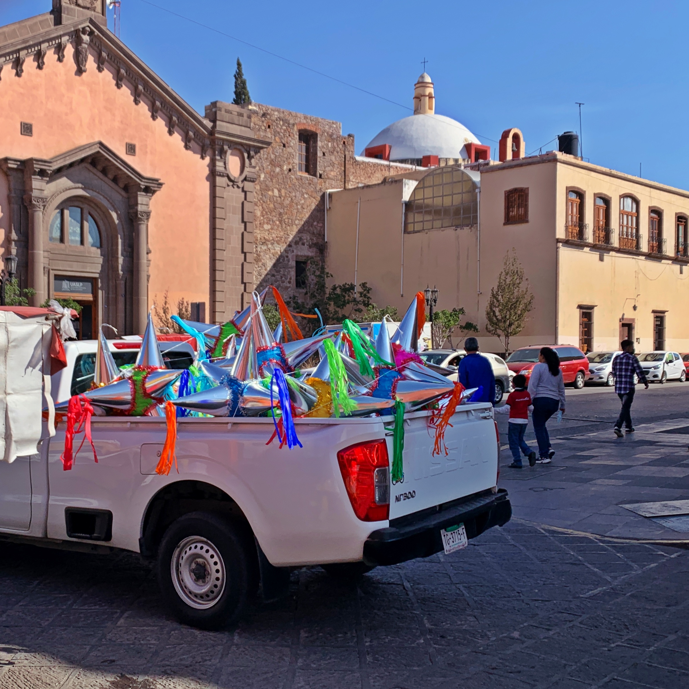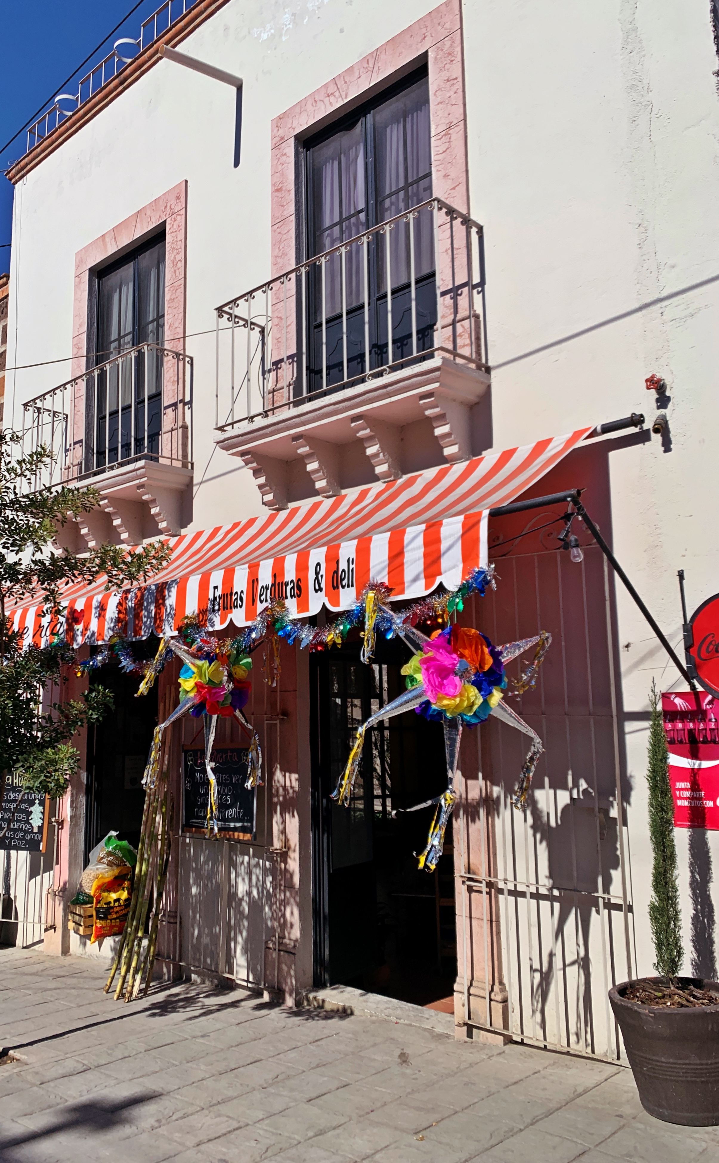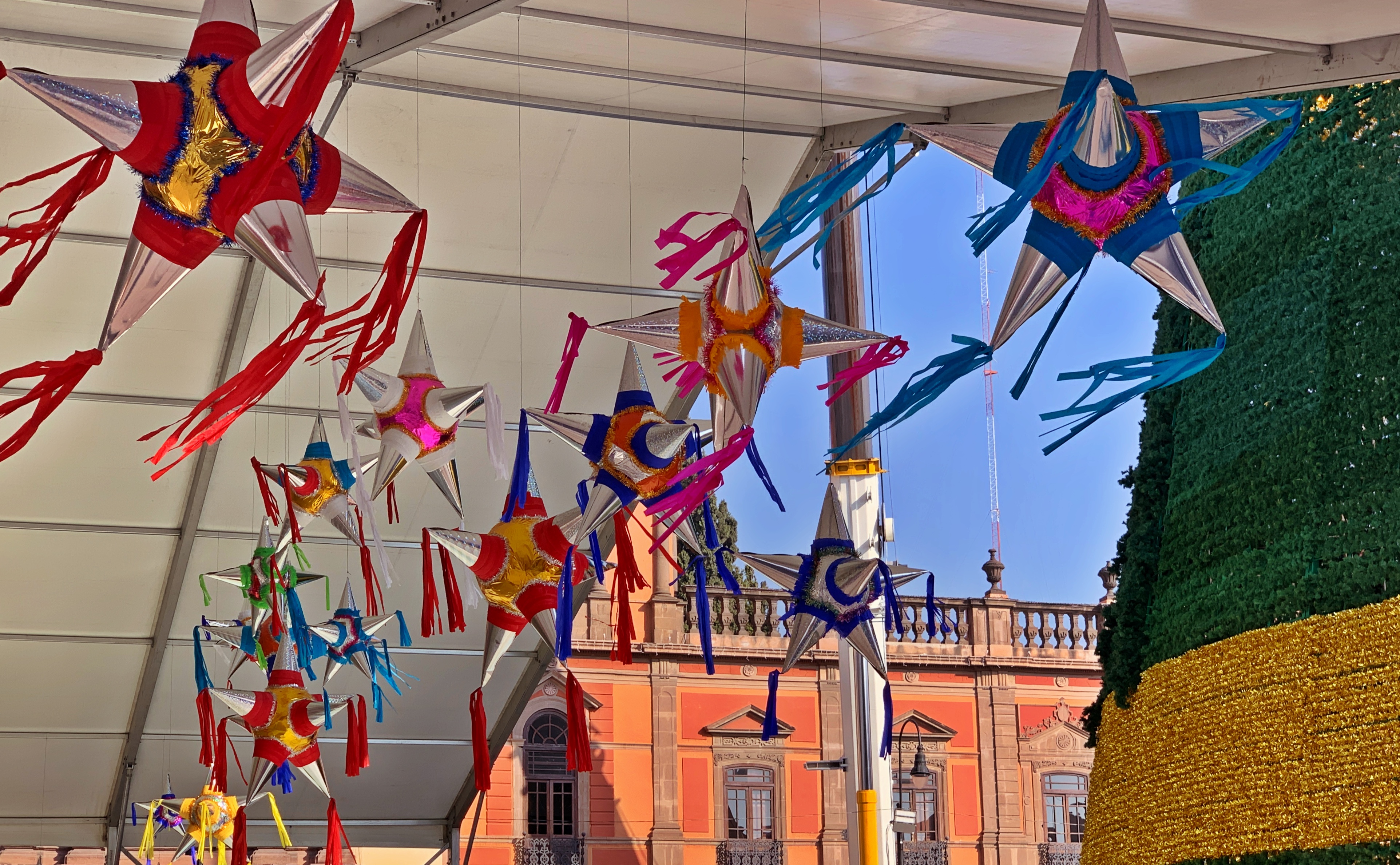 The businesses have a beautiful range of decorating. Poinsettia’s (Noche buena) and piñatas seem to be central to the decorating theme.