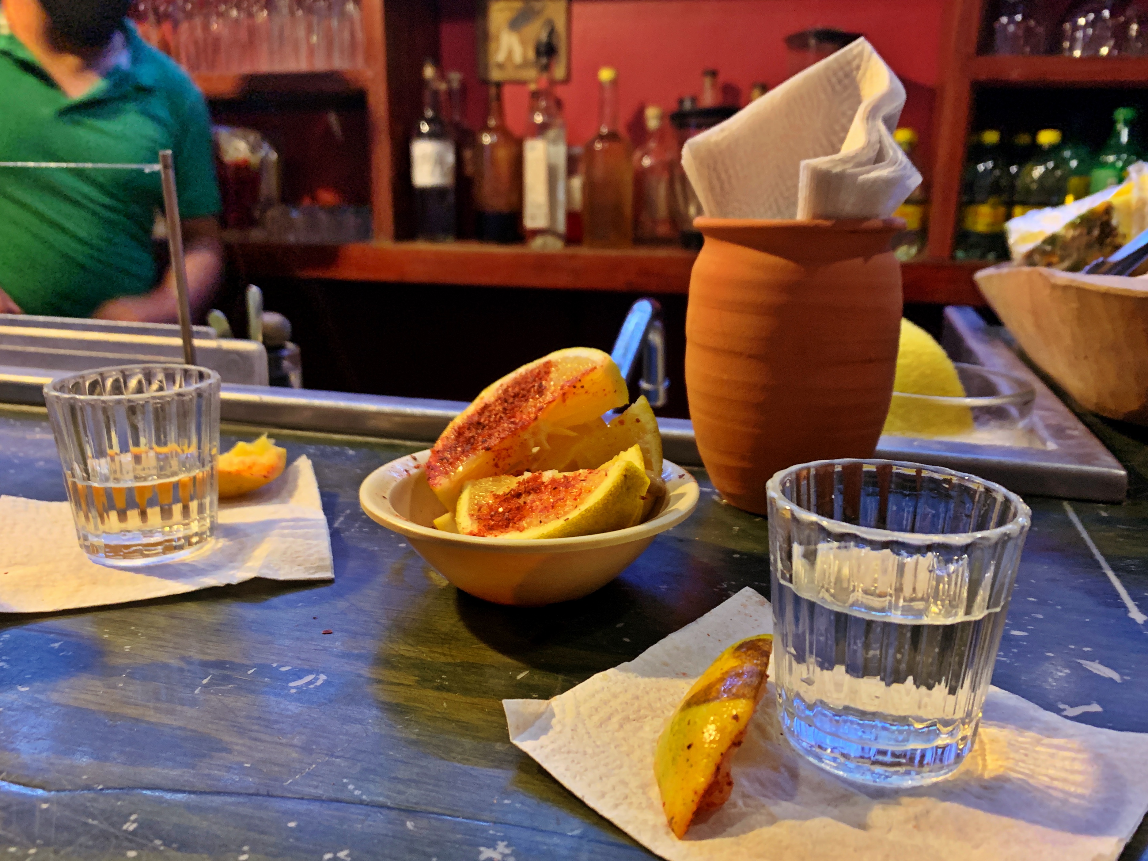 La Cava de Marquis in the backgroundI love this traditional way to serve mezcal with orange slices & Sal de Chapulín (salt of grasshopper)