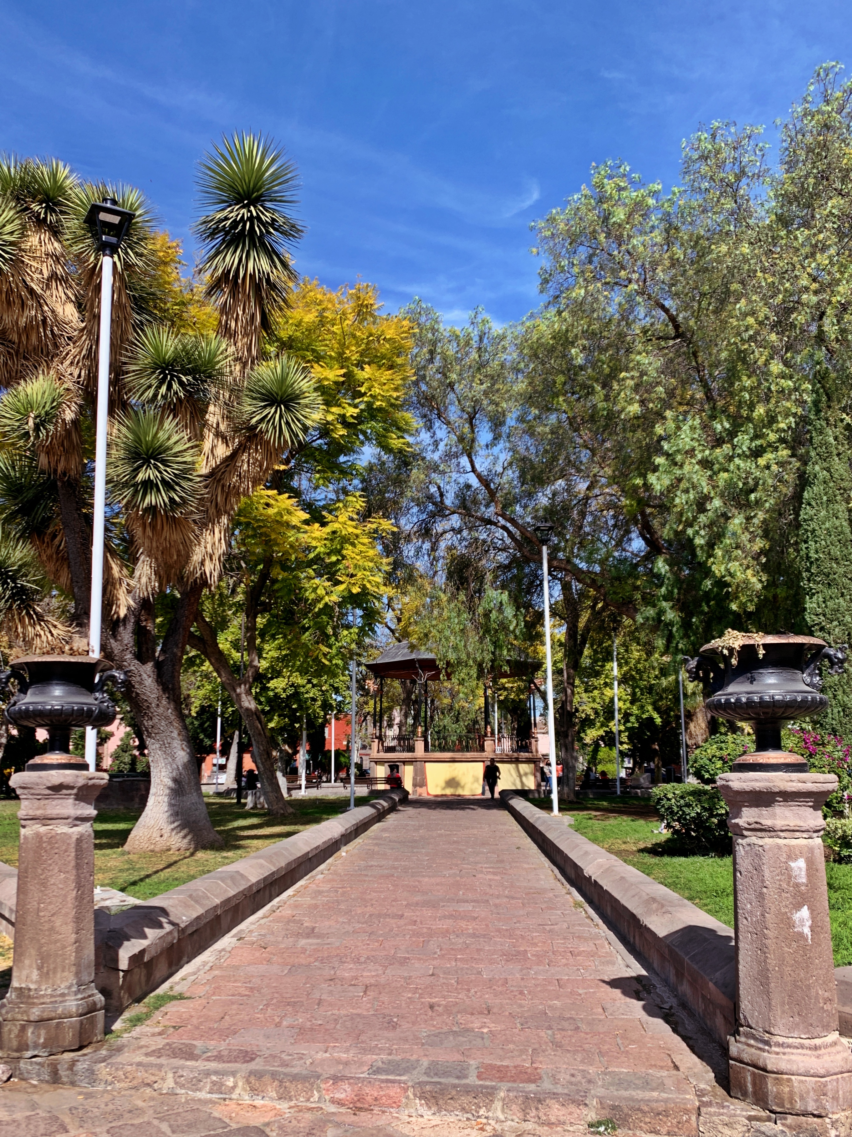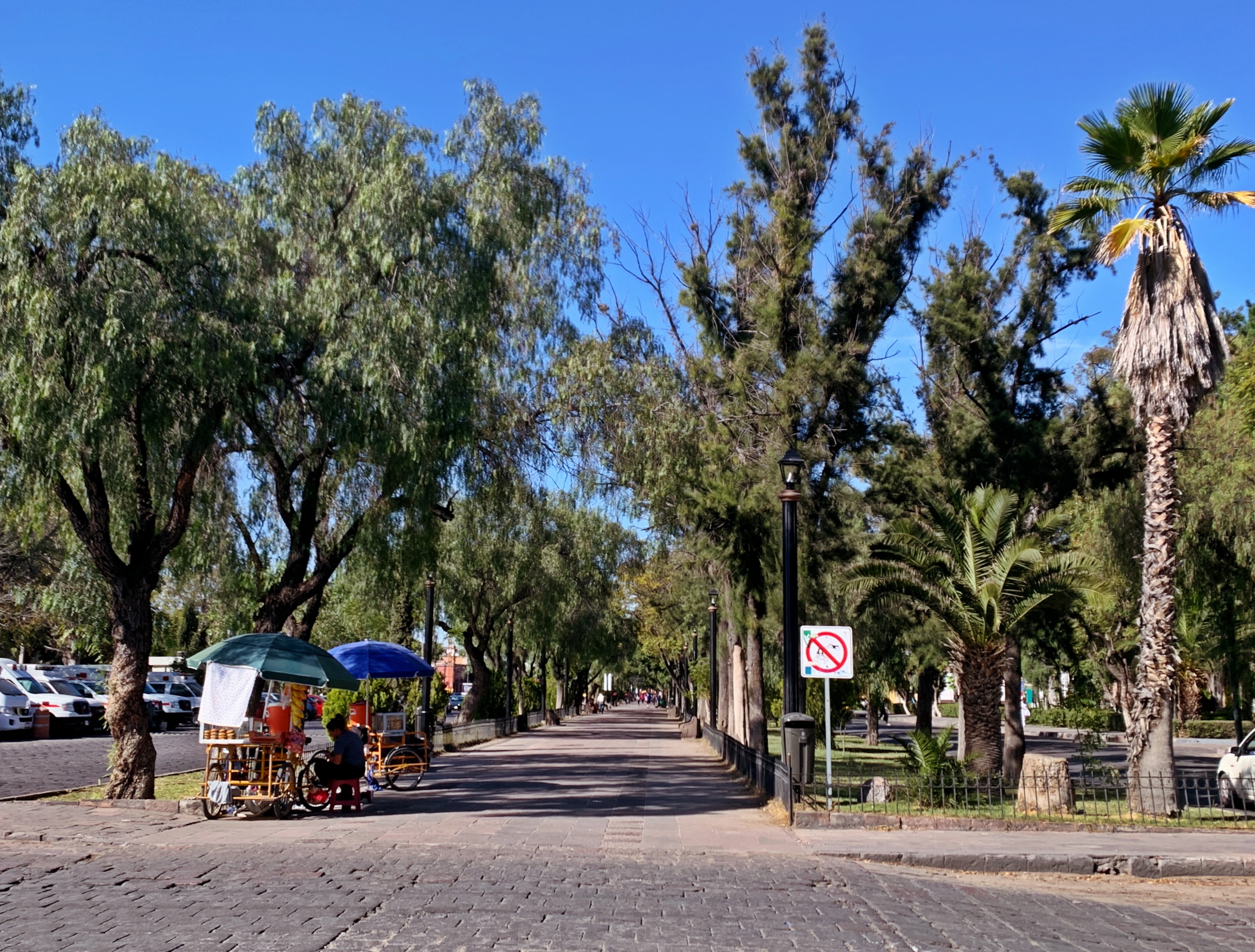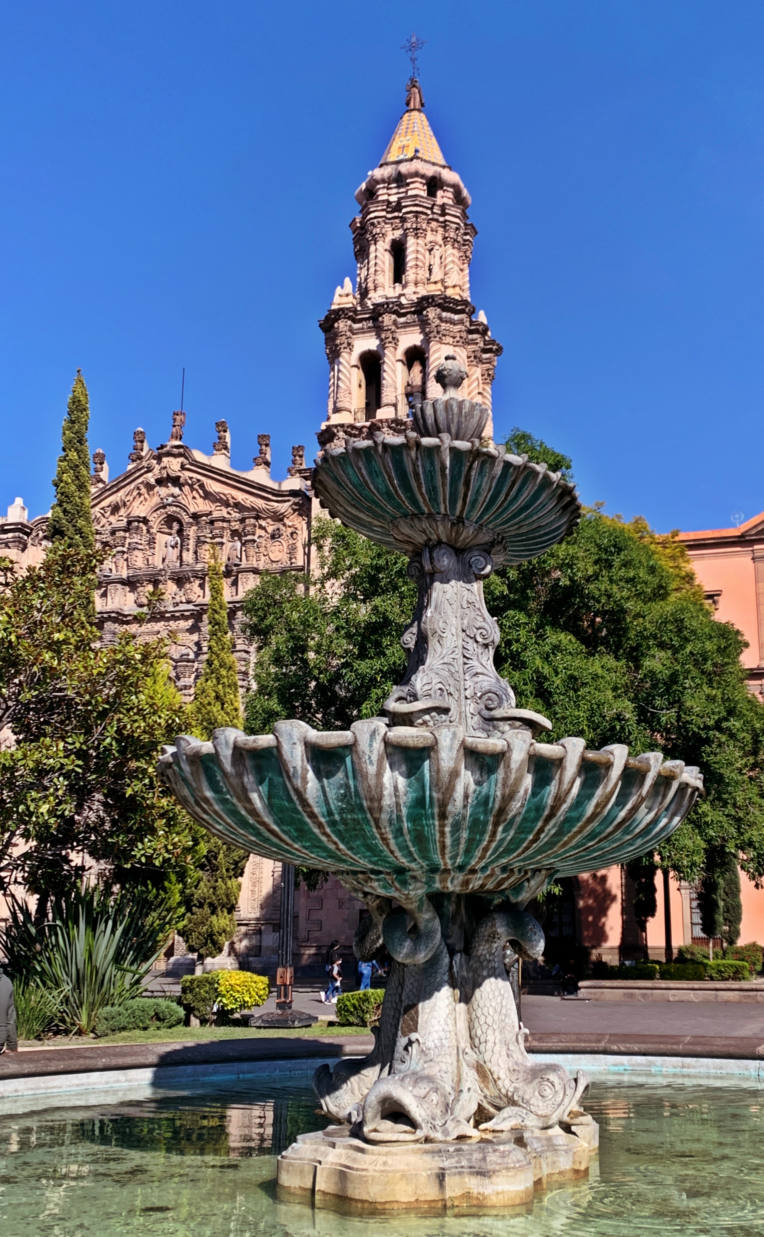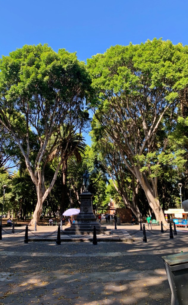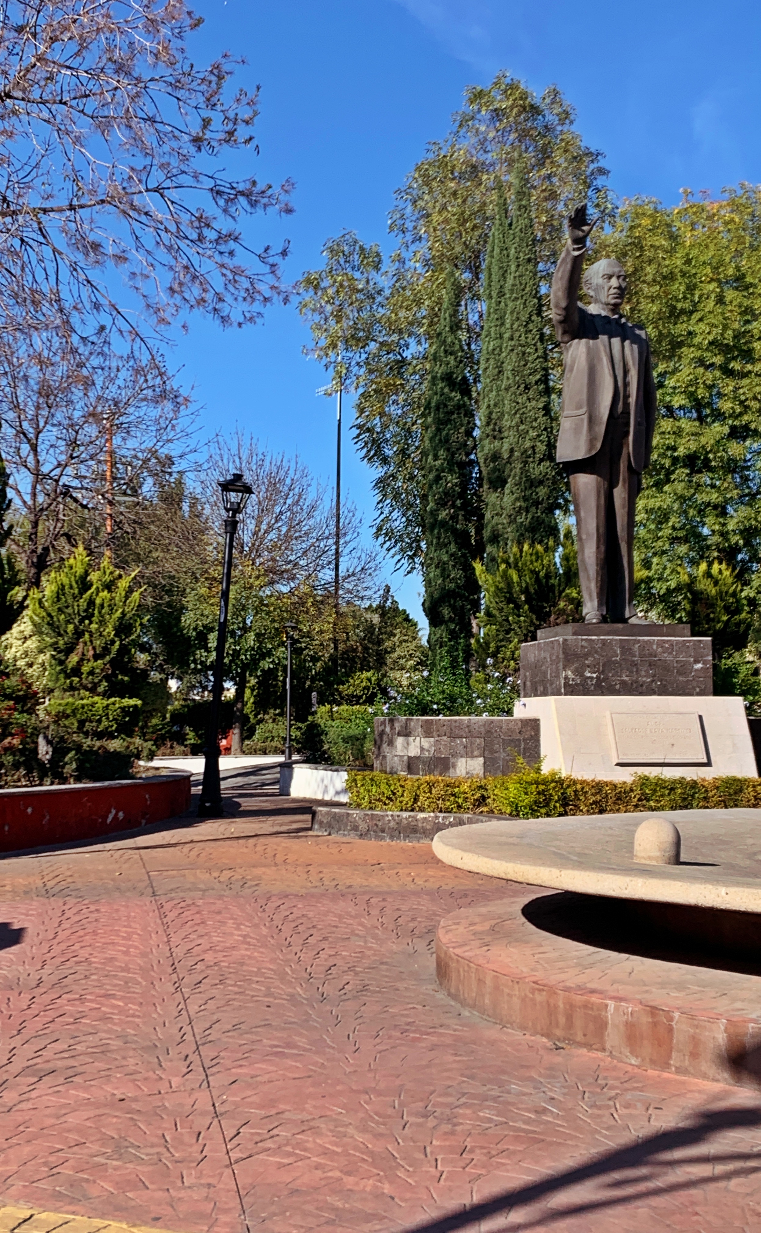Fuente de Paseo Bravo Monumento a Fray Toribio de Benavente “Motolinia”I love these benches – and they are comfortable!The large trees offer much needed shadeFountain in front of the Templo de Nuestra Señora de Guadalupe