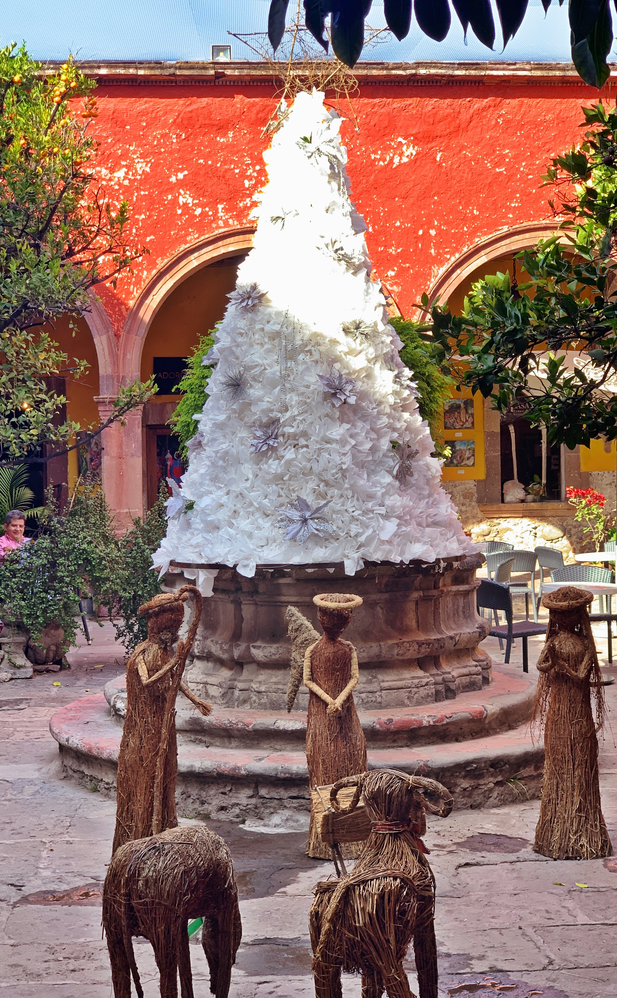 In the center of town you see the many interesting decorations, generally created by civic groups and include a religious theme. When I was in Mexico from 1958 to 1962 I did not see a lot of Christmas trees, but that has changed now.