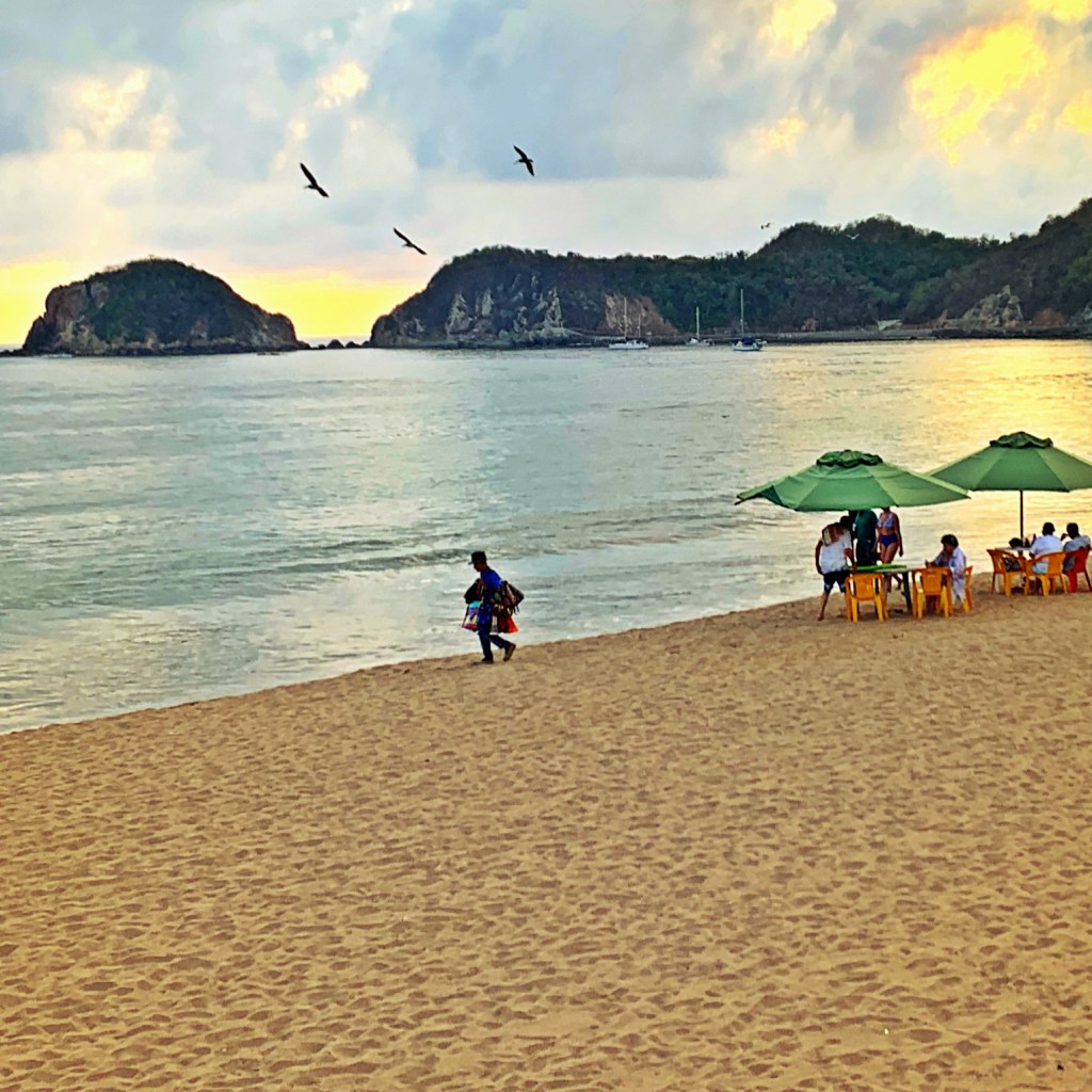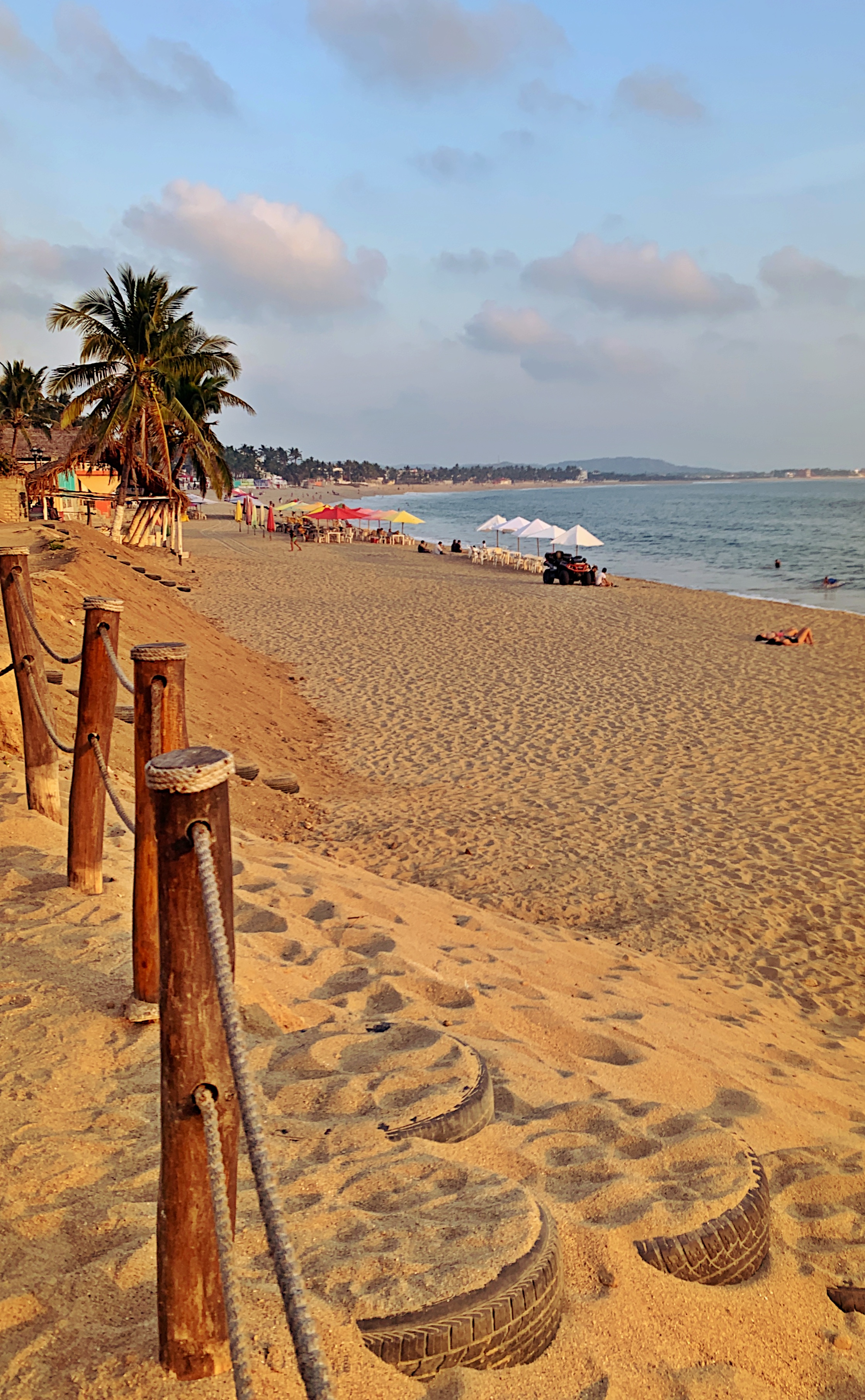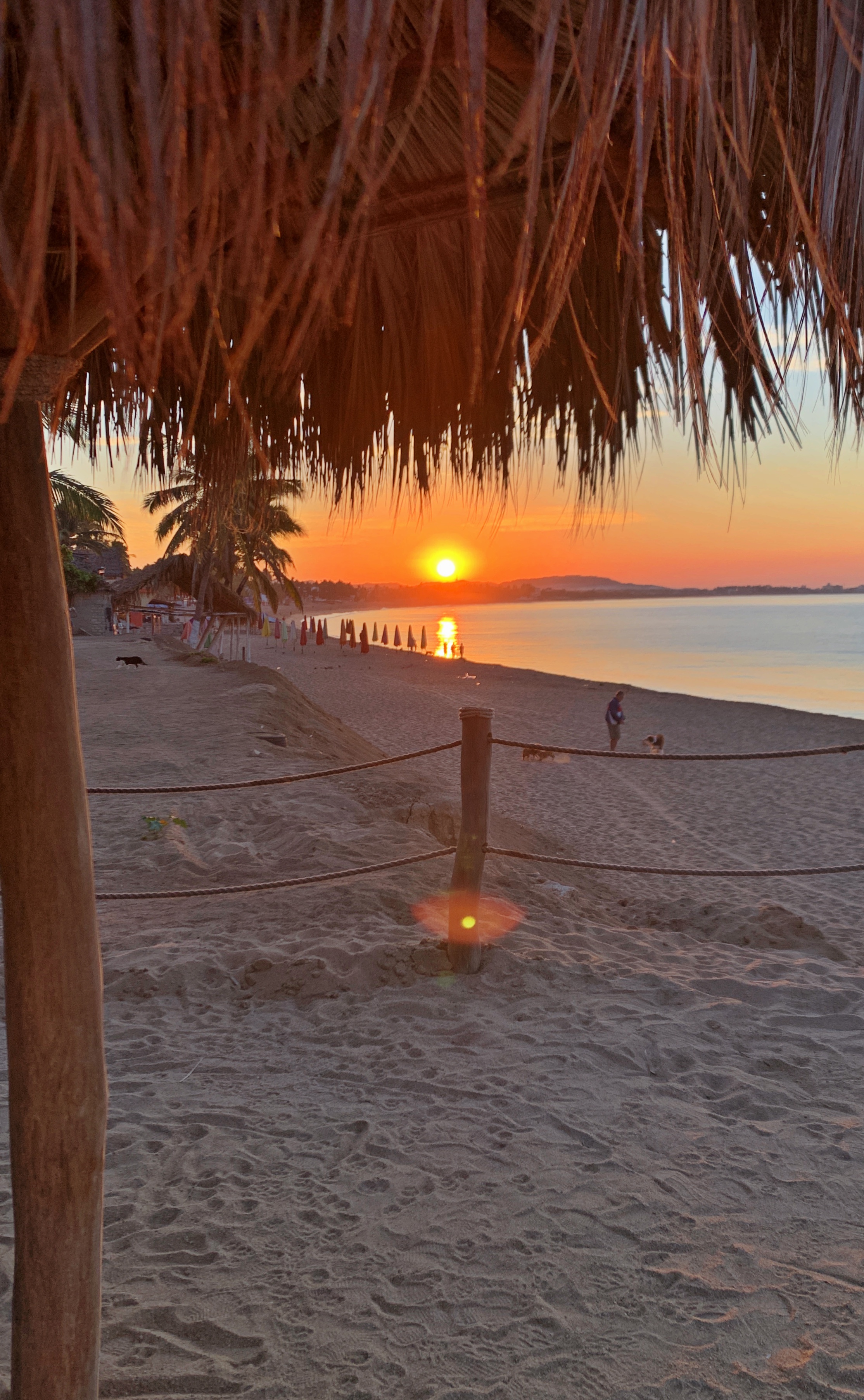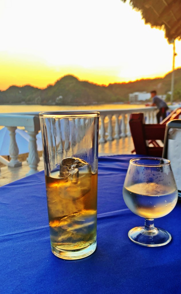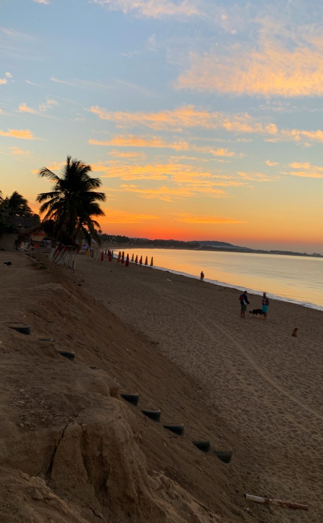 Food & Drink could be a longer topic, but I’ll give you the short version here. I have only gone out for one meal, as I enjoy eating from the tremendous array of fresh fruits and veggies available here. However, I love going out for coffee in the morning. One of my favorite places, La Taza Negra, makes great smoothies as well. One thing I love, is that their ice cubes are made out of coffee! The next three shots are of one of my favorite restaurants, called El Dorado. I walk up from the beach with my sandy feet and sit at linen covered table with a view of the sunset. The last time I was there a group of expats were dancing, and teaching, latin dances. They do this every Wednesday evening – what fun!