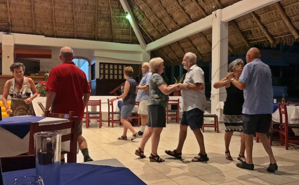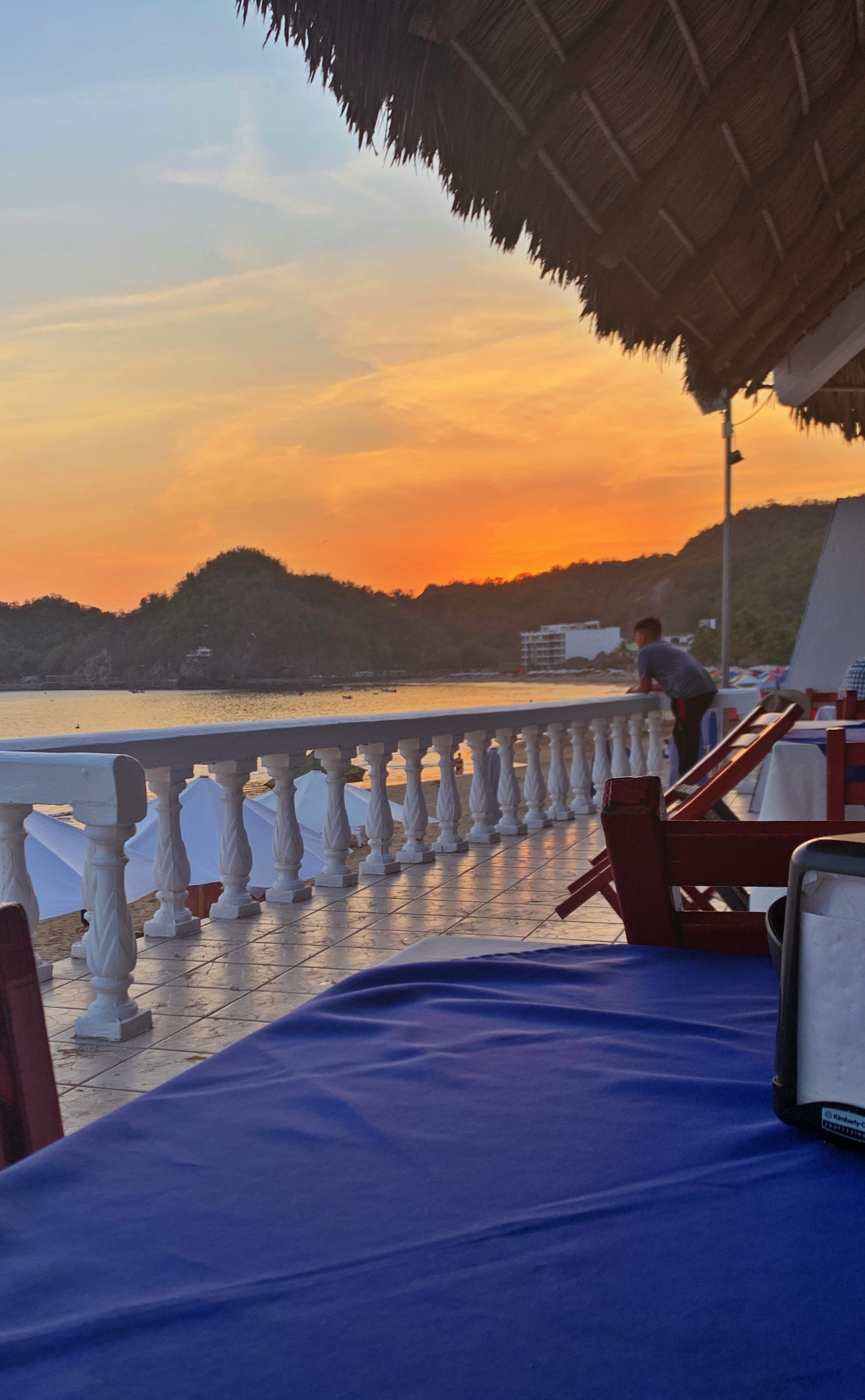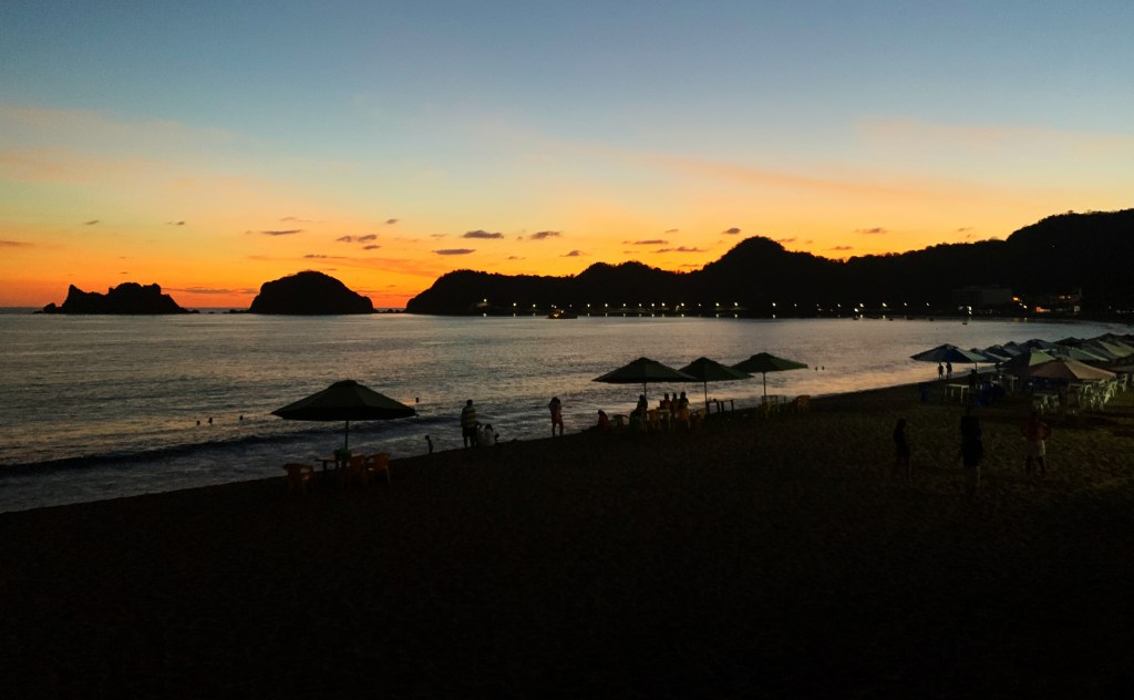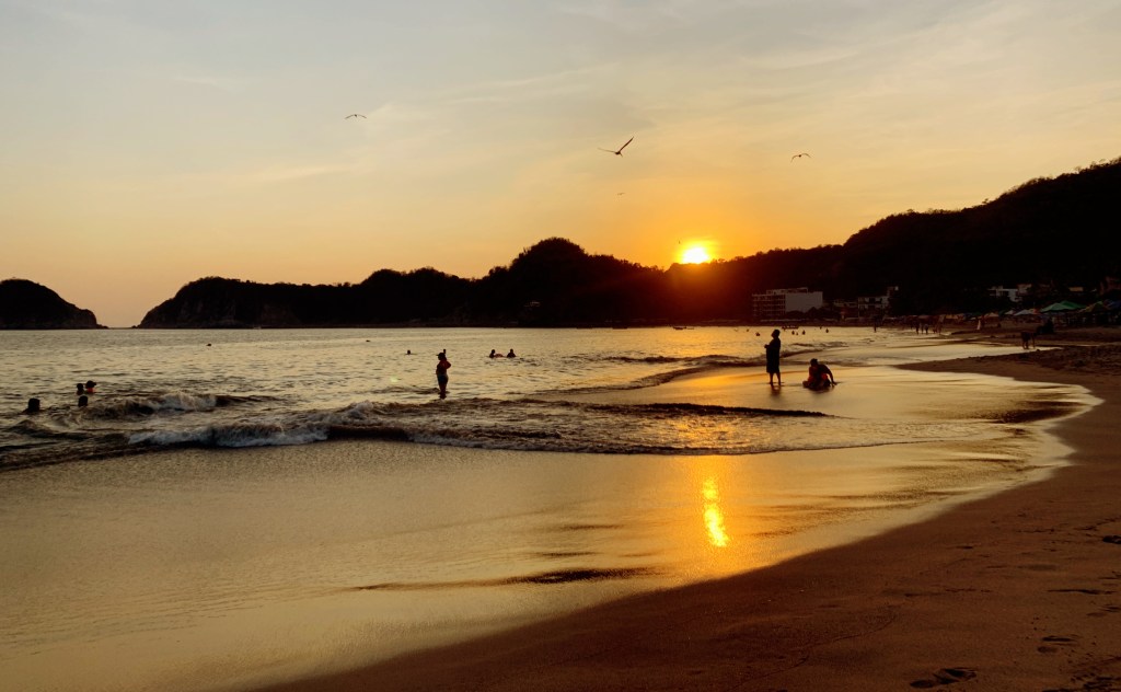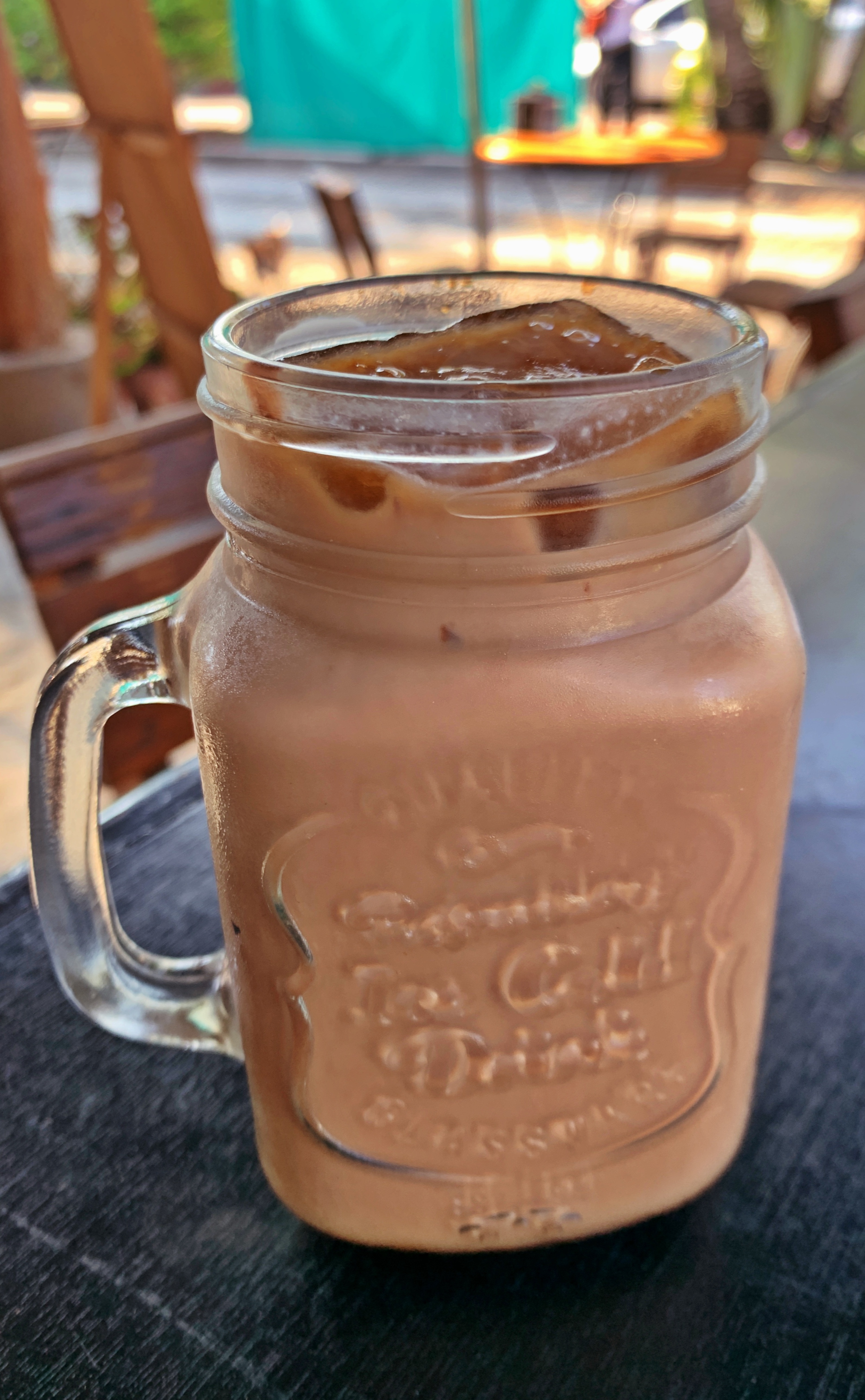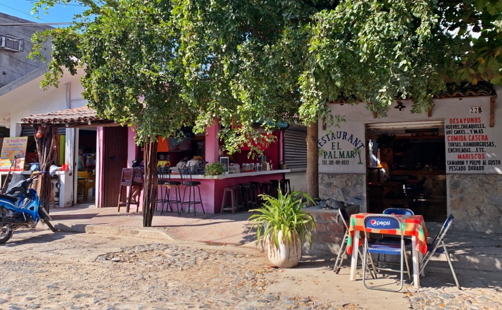 Food & Drink could be a longer topic, but I’ll give you the short version here. I have only gone out for one meal, as I enjoy eating from the tremendous array of fresh fruits and veggies available here. However, I love going out for coffee in the morning. One of my favorite places, La Taza Negra, makes great smoothies as well. One thing I love, is that their ice cubes are made out of coffee! The next three shots are of one of my favorite restaurants, called El Dorado. I walk up from the beach with my sandy feet and sit at linen covered table with a view of the sunset. The last time I was there a group of expats were dancing, and teaching, latin dances. They do this every Wednesday evening – what fun!