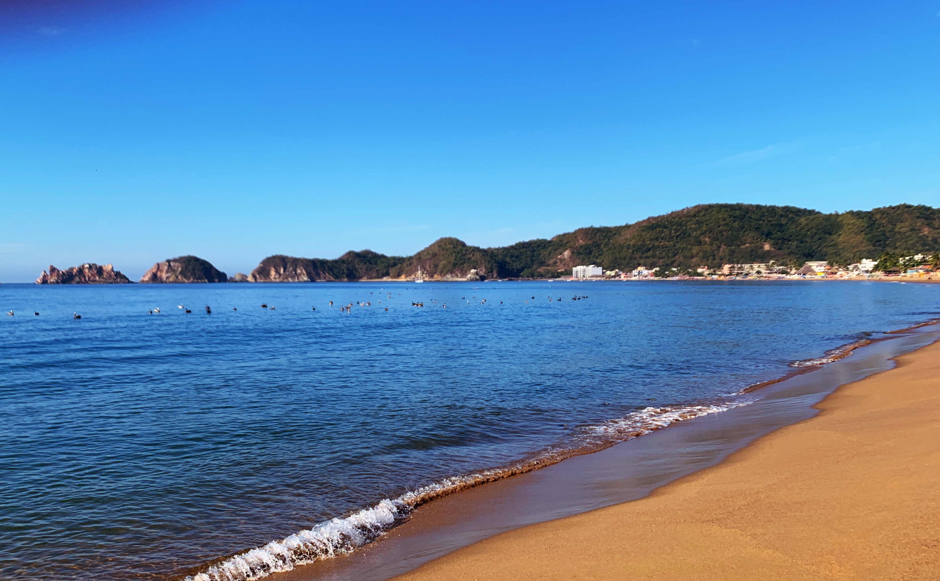 Since my flight left at 6:15 am, I stayed in a hotel close to the airport which made my travel over a leisurely two days. The first day I took a taxi to the bus station, the UneBus to the Guanajuato Airport (Leon, Silao, Bajío), and another taxi to the hotel. The next day I took the hotel shuttle to the airport, flew to Mexico City, flew to Manzanillo, then took a taxi to my Air BnB in San Patricio. I lucked out with the cab driver as turned out to be a bit of a tour guide. He offered to take me through Cihuatlán where we stopped so I could check out their beautiful white church (Parroquia La Santa Cruz).
