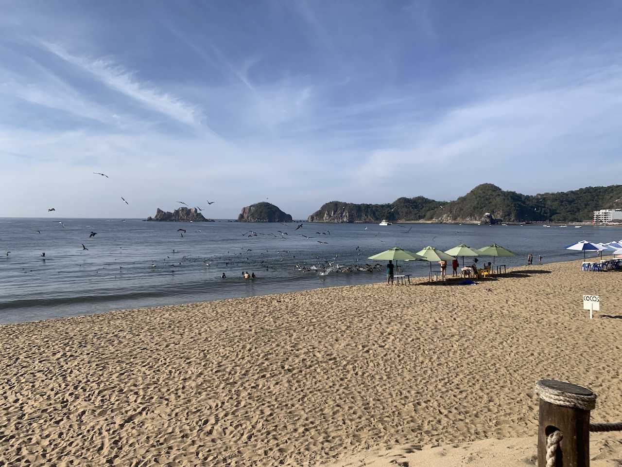Large families (mainly Mexicans) haul their coolers and congregate around rented beach umbrellas – laughing, singing, eating, playing soccer, playing music, playing in the waves.