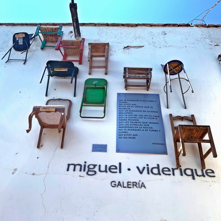 On our way home we passed a museum with an interesting display of chairs on their exterior wall, along with a poem. Each chair has a name and a year written on them and the following poem