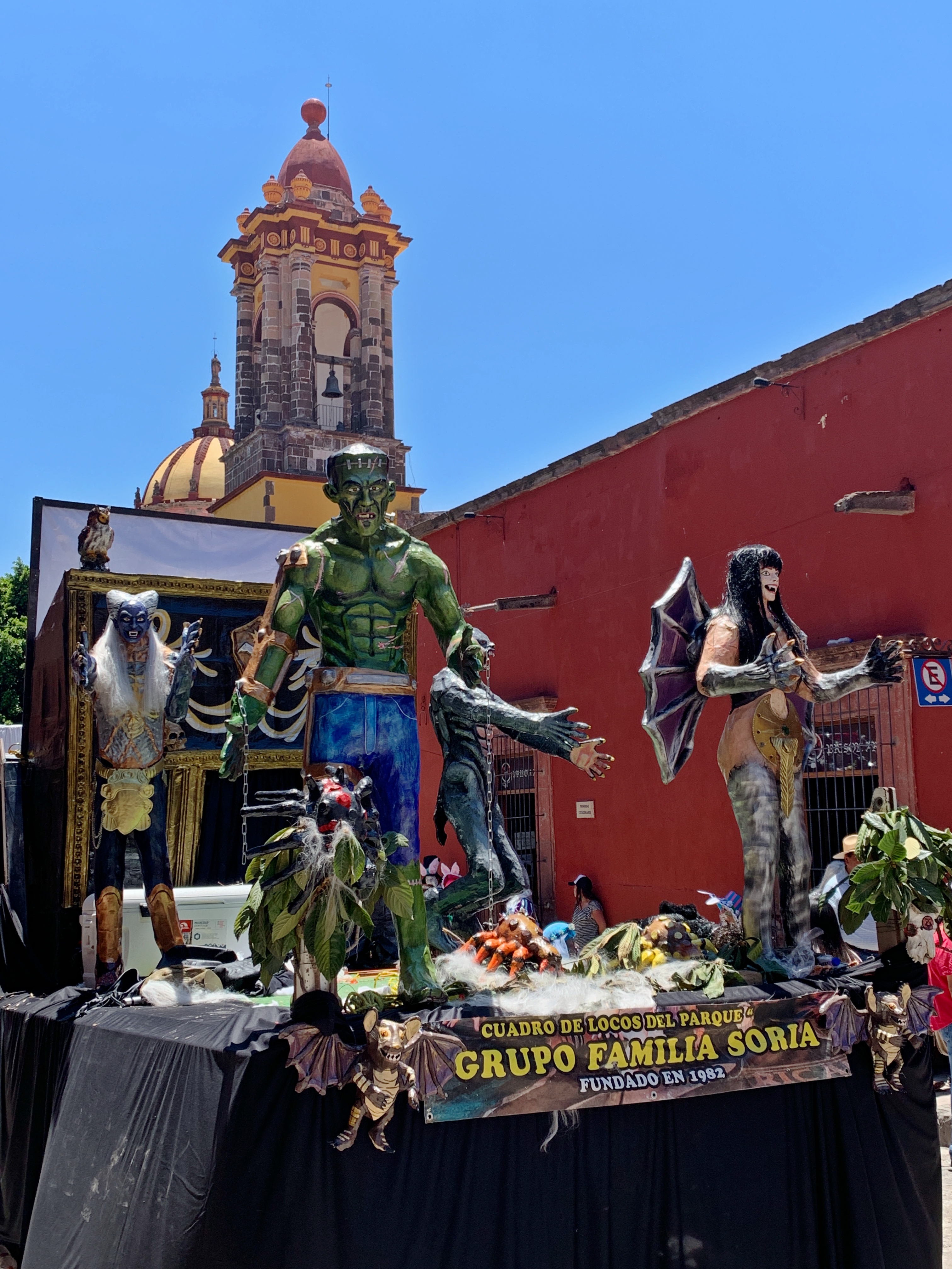 My first Sunday turned out to be Dia de Los Locos – day of the crazies! Fire crackers started announcing the day at 5 am on Saturday! On Sunday morning a friend and I went out for breakfast and families were already flocking to the center of town. Ambulances were blocking off streets and ropes were placed to delineate the parade route. The energy was palpable as everyone secured their favorite spot to view the parade.