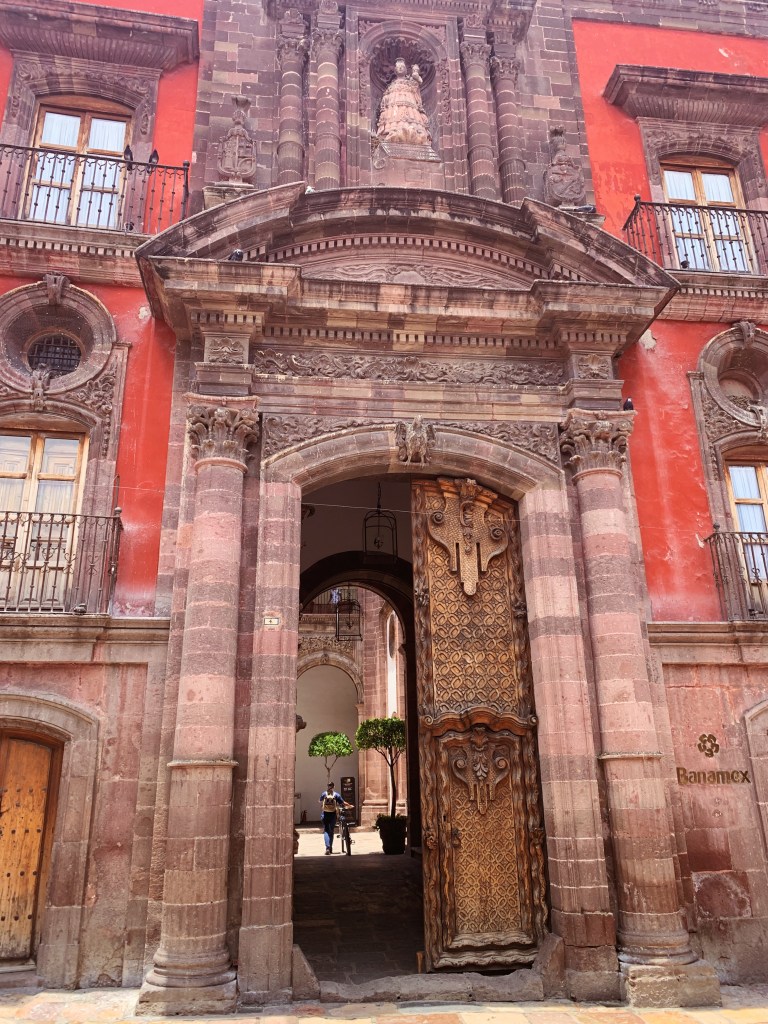 The first thing that hit me as I wandered about town, is how beautiful it is. Churches, gardens and parks a plenty! Almost all buildings maintain the stunning old-style wooden doors, handcrafted metal latches, stone and adobe walls with bright color paint. Wandering down the streets, glancing in and entry and a whole other world appears with gardens, hanging lamps, fountains, adorned with textiles and artwork.