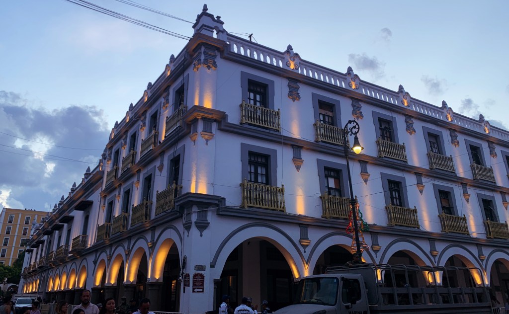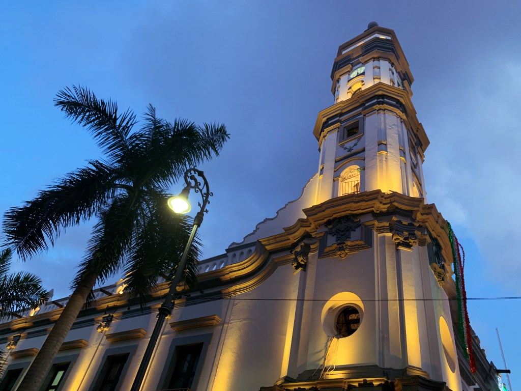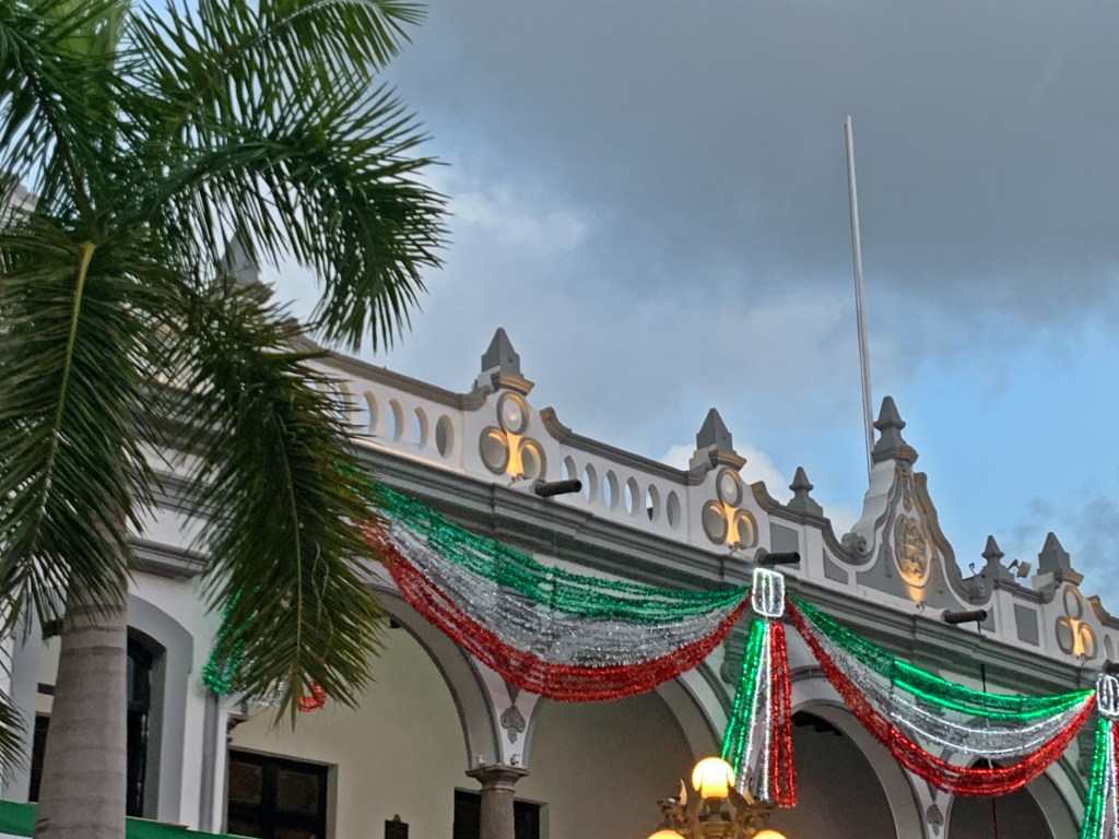 I was lucky enough to meet a man from Queretaro, similar to my age (probably younger), at the Air BnB whee we were both staying. He invited me to go downtown to see the sights on eve of Independence Day. I don’t think he was flirting with me (not sure what that looks like, in Mexico, at my age), but he was very polite and great company. We took the bus, he paid (because he had asked me, he said). He always walked on the outside of the sidewalk and ensured that I was the first one through a door or opening. We began at the port and I could finally see how large and active it was. Then we headed to the historical district. Families decked in patriotic outfits filled the streets and businesses. As darkness fell the lighted buildings took on a new glow.