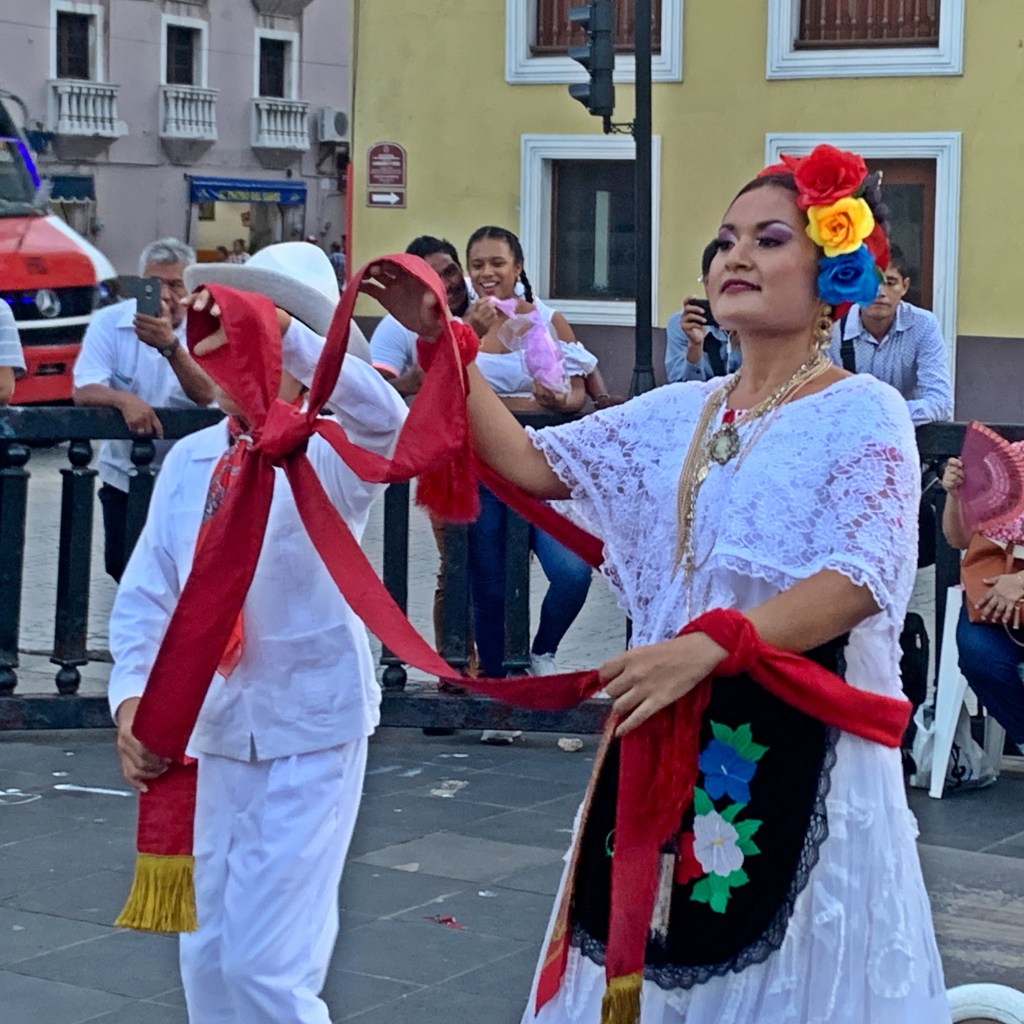 The night of September 15th begins the Independence Day celebration when traditional foods, music, dance takes place. At 11 pm the “Grito de Independencia” is reenacted in many state capitals, with the most spectacular one in the Zocalo of Mexico City. I, of course, was asleep in my bed when all that occurred. However, before that I was in Veracruz and very excited to see the Mexican dancing in the traditional outfits from Veracruz.