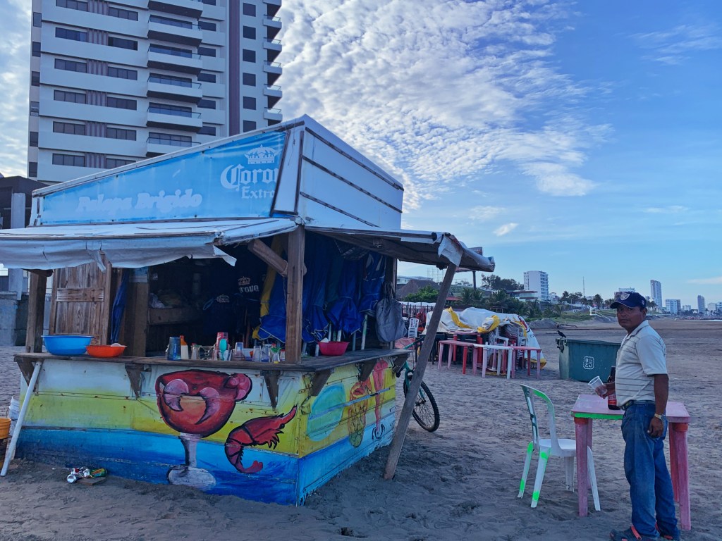 My first day in Boca del Rio I headed to the beach and walked up to the mall, knowing I would be sure to find air conditioning! I paused three times during the two mile trip – once for about an hour while I watched the Seahawks game in a hotel bar (also air conditioned). This mall is quite new and was impressive in a few ways: most of the stores in it had names I recognized from Bellevue Square; artisan market stalls were lining the hallways; and, it was smack dab on the beach!