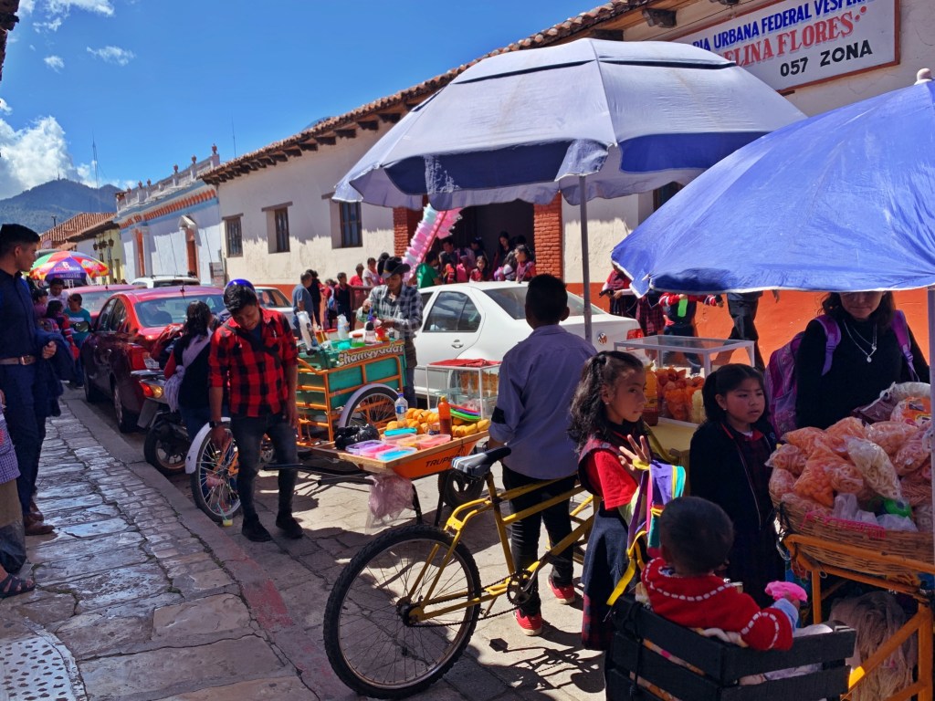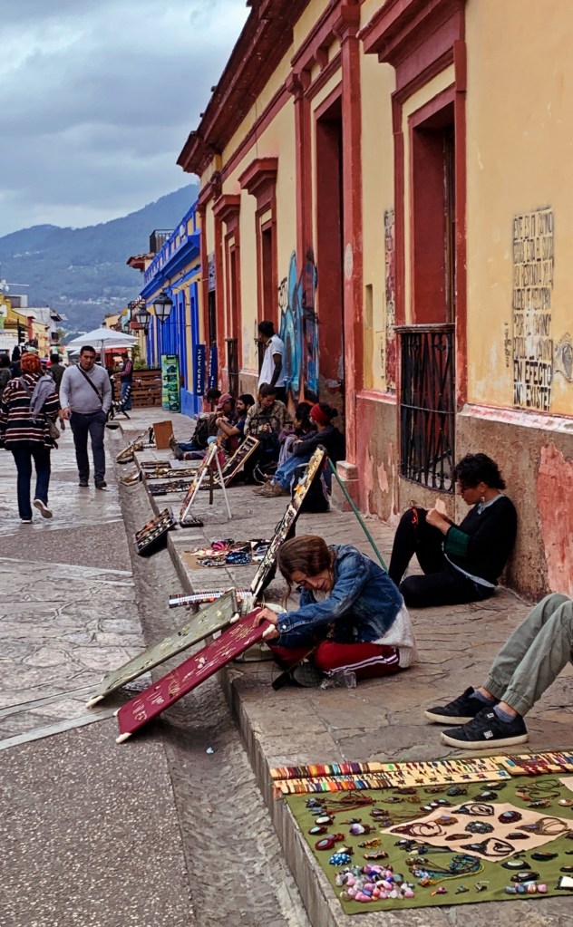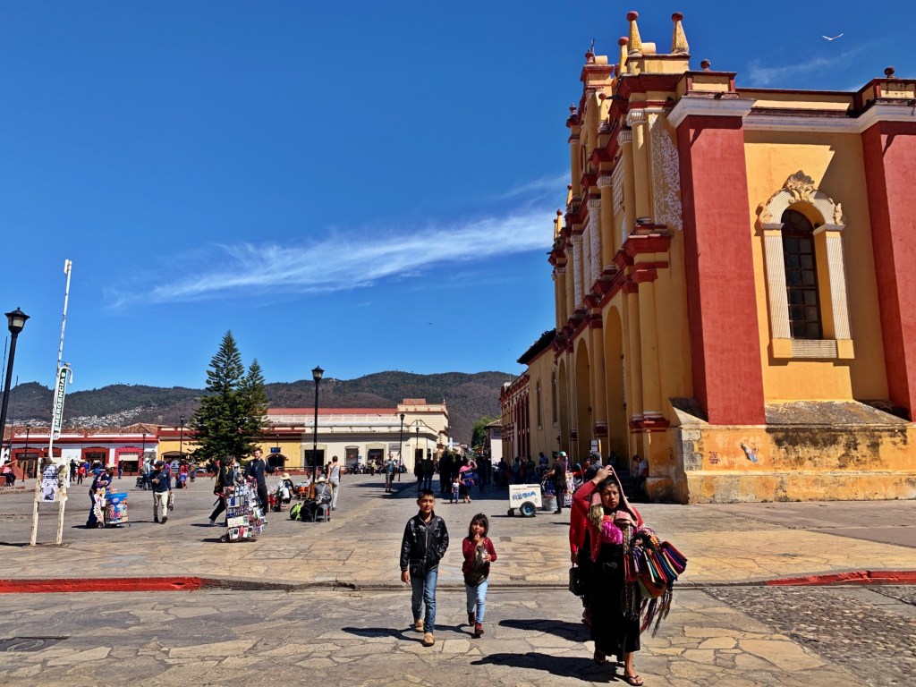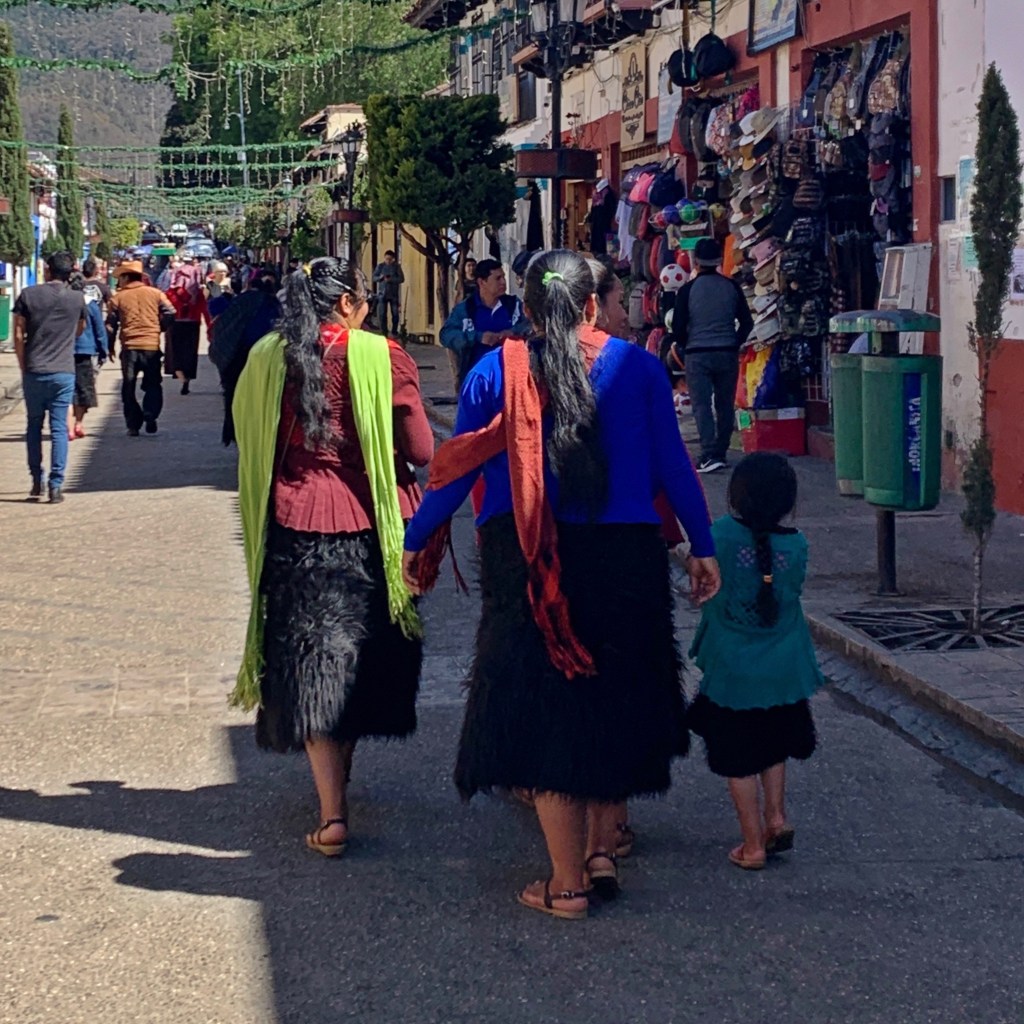 Wow! After a whirlwind month in Oaxaca, I am now settling into the very different city of San Cristobal de las Casas, in the state of Chiapas. It is the farthest South I will get. I am feeling quite introverted and am resting up for my busy April in Puebla. I will be sticking close to town even though San Cristobal is surrounded by natural wonders (caves, rivers, falls, archeological, canyons, and more) and towns (indigenous, artisan, Zapatista influence). I can see why this city (population about 160,000) is considered the cultural capital of Chiapas. The beautiful people doing business in the streets and markets represent the historic Mayan culture of this area. The languages, Tzotzil and more, are very commonly heard on the streets, accompanied by their beautiful, traditional dress. Their dress highlights the diverse and striking textiles and amazing hand-craft talents these people have. The markets are plentiful, overwhelming, crowded and lovely in their opportunities for purchasing. I can hardly keep my wallet closed! I was impressed by how big a center for amber this is, and the work is creative, abundant and low priced. San Cristobal seems to draw different kinds of visitors. I see quite a few young people and people from countries other than USA and Canada. It almost has a “hippie” vibe. One of my favorite pastimes is to order a limonada mineral, drink it outside and people watch.