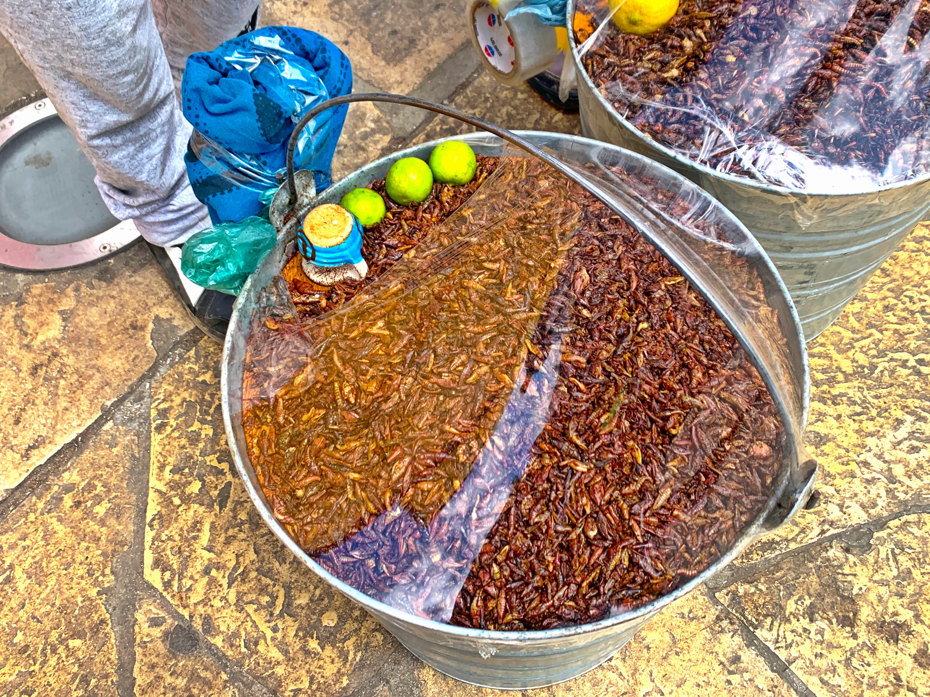 I am intrigued with grasshoppers. Almost every corner has a couple of buckets of them for sale. I have tasted them in quesadillas, tacos, salsas, and more. I have even bought my own salsa with grasshoppers blended in. I finally bought them (see last photo). I’m not sure what I’m going to do with them. I’d love to bring them home and make a special salt blend that a bar tender told me about: equal parts sea salt, pasilla chili (smoked flavor), and Chapulines. I’d love to add garlic, too.