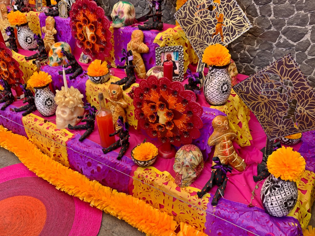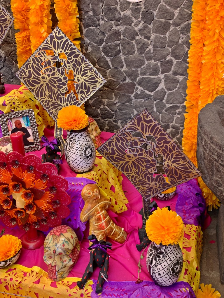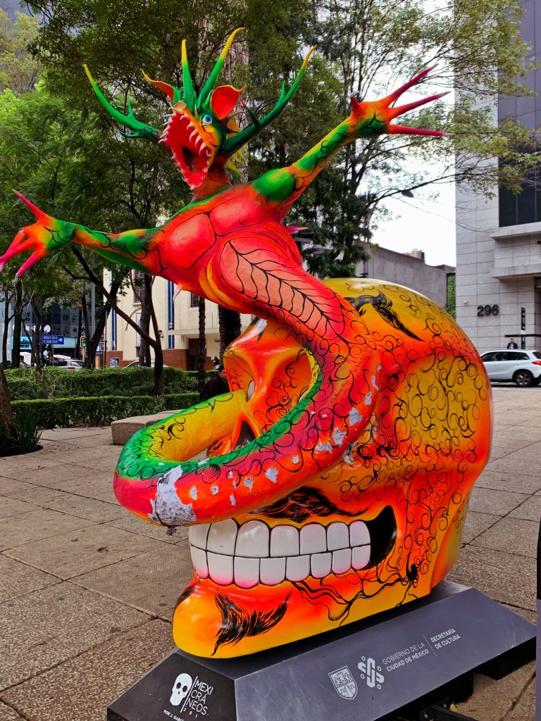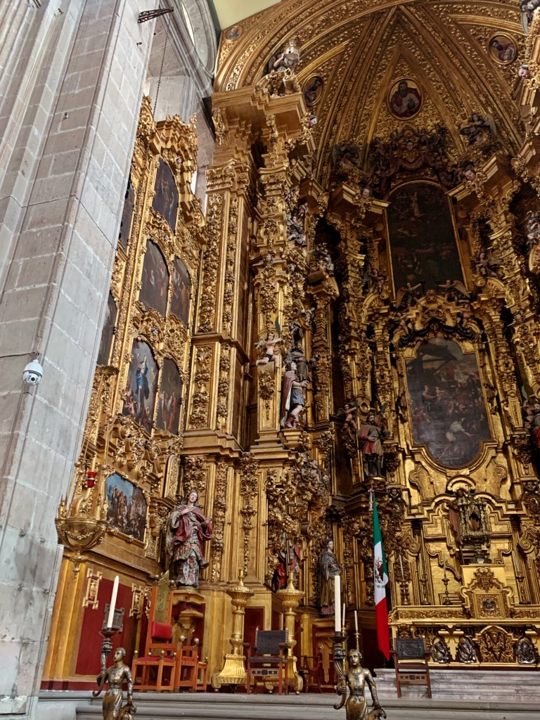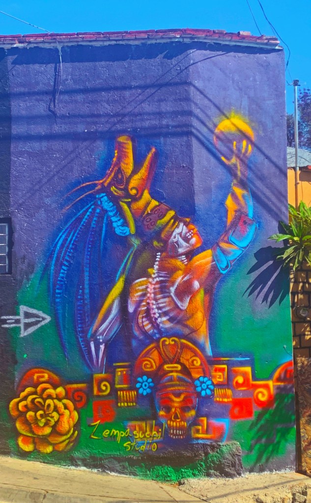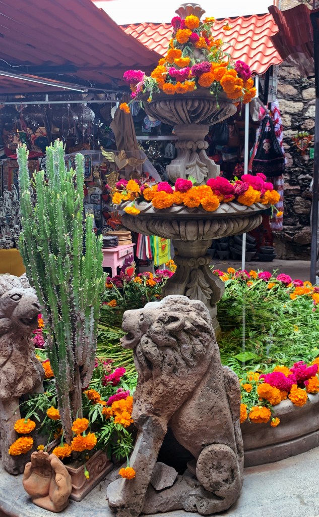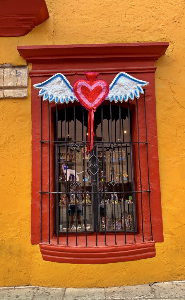 This world class exhibit is located in the beautiful Ex-Convento Santo Domingo. I am not a super fan of textiles, but the amazing examples of handwoven textiles (over 500), from Mexico and Central America, were drop dead gorgeous. Much of these were artfully, displayed in drawers that protects each piece. I have been surprised by the use of sparkling threads, especially in skirts and shawls, that I have seen in clothing worn by indigenous people in the city. However, this trend is also demonstrated in this exhibit. I love the bit of bling!