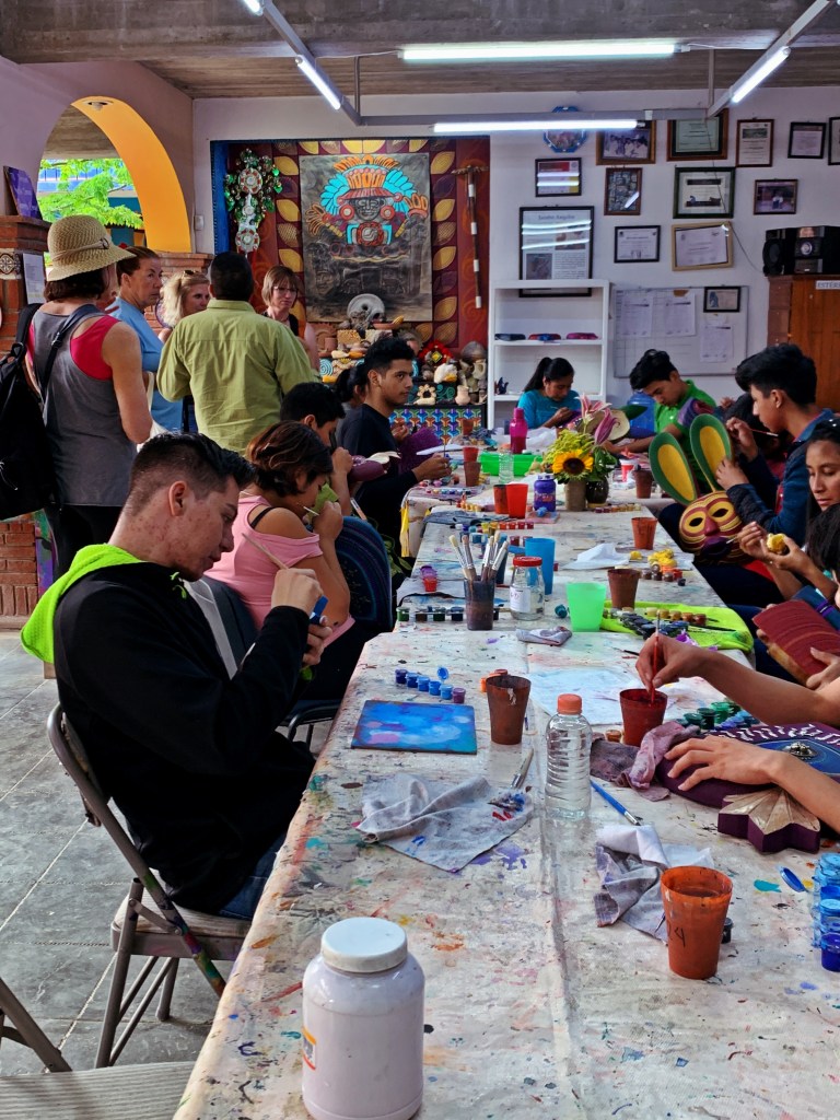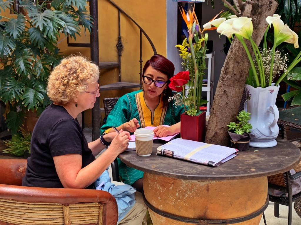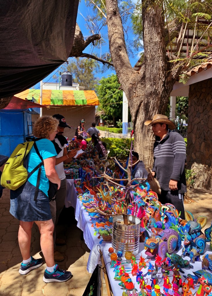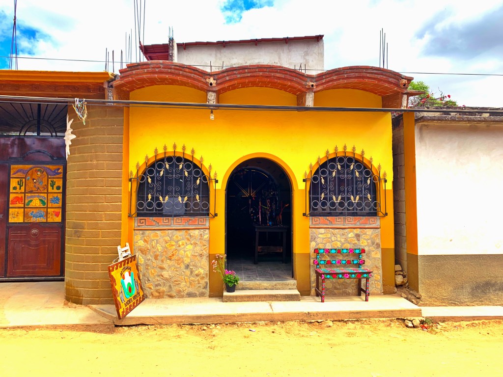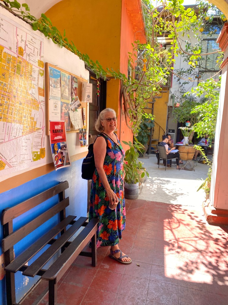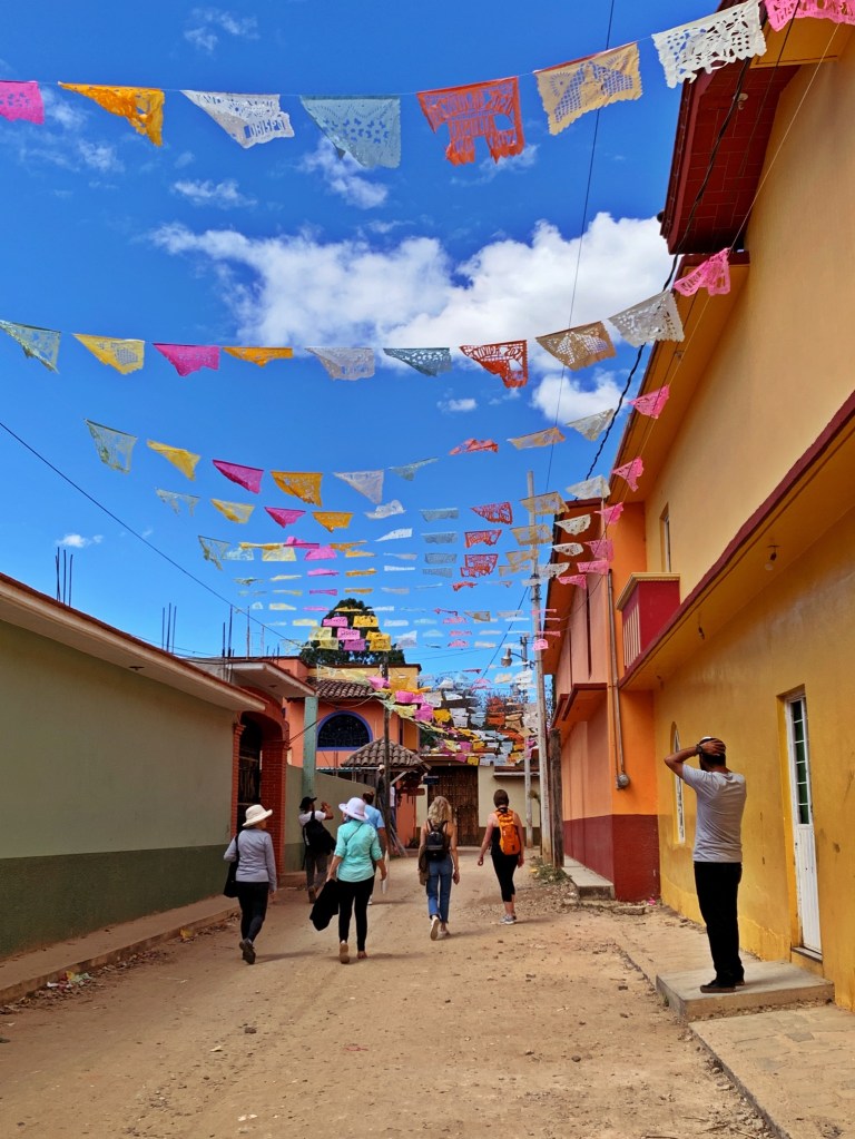 Wow! After a whirlwind month in Oaxaca, I am now settling into the very different city of San Cristobal de las Casas, in the state of Chiapas. It is the farthest South I will get. I am feeling quite introverted and am resting up for my busy April in Puebla. I will be sticking close to town even though San Cristobal is surrounded by natural wonders (caves, rivers, falls, archeological, canyons, and more) and towns (indigenous, artisan, Zapatista influence). I can see why this city (population about 160,000) is considered the cultural capital of Chiapas. The beautiful people doing business in the streets and markets represent the historic Mayan culture of this area. The languages, Tzotzil and more, are very commonly heard on the streets, accompanied by their beautiful, traditional dress. Their dress highlights the diverse and striking textiles and amazing hand-craft talents these people have. The markets are plentiful, overwhelming, crowded and lovely in their opportunities for purchasing. I can hardly keep my wallet closed! I was impressed by how big a center for amber this is, and the work is creative, abundant and low priced. San Cristobal seems to draw different kinds of visitors. I see quite a few young people and people from countries other than USA and Canada. It almost has a “hippie” vibe. One of my favorite pastimes is to order a limonada mineral, drink it outside and people watch.