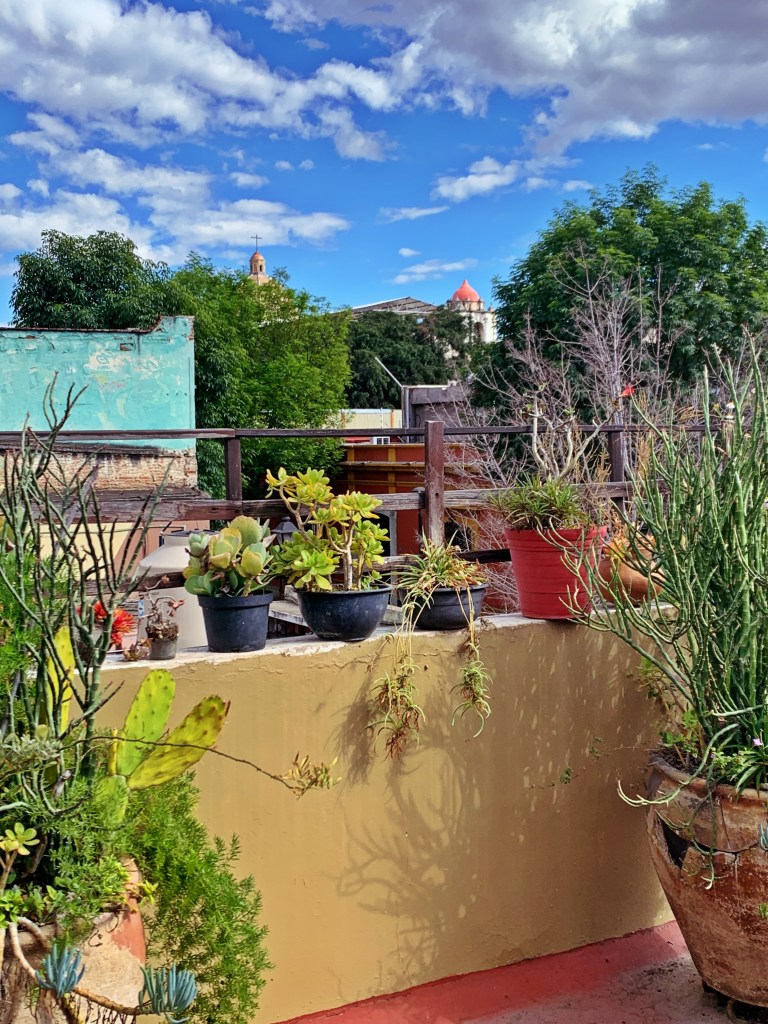 The banner photo is the view from my bedroom on my first day. This view of Templo de Guadalupe is one of the great things about my home. Another is the design and ecological and socially responsible design elements. The Air BnB profile states that “The apartments were designed and built by Frédéric Burkhard, winner of the 2012 European Award for Artistic and Cultural Activities. Frédéric’s designs are distinctive in their organic forms, use of natural light and efficient use of space.